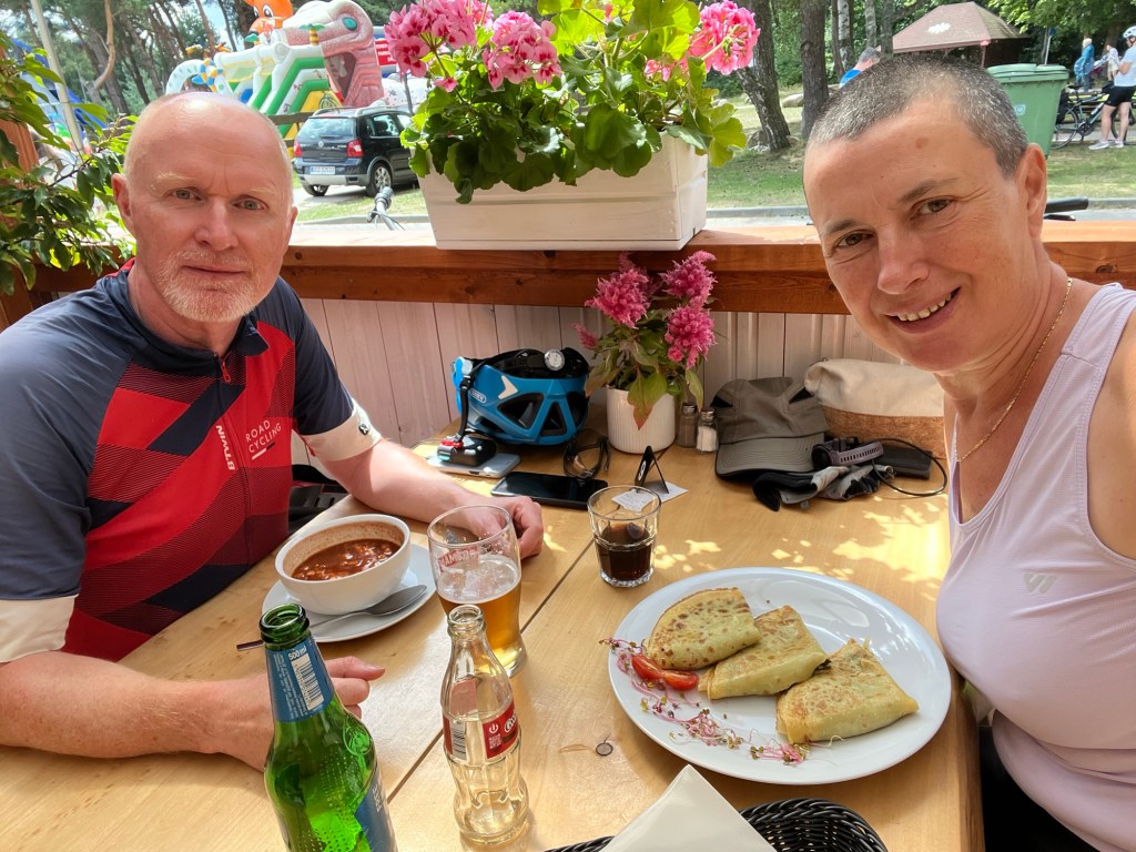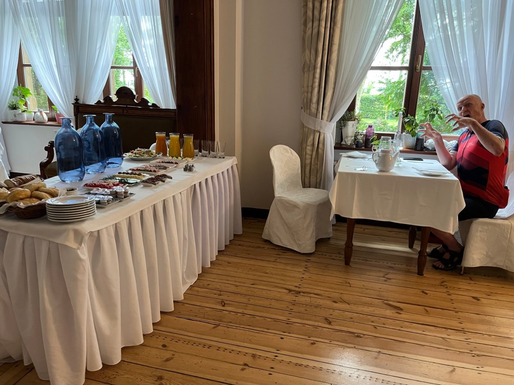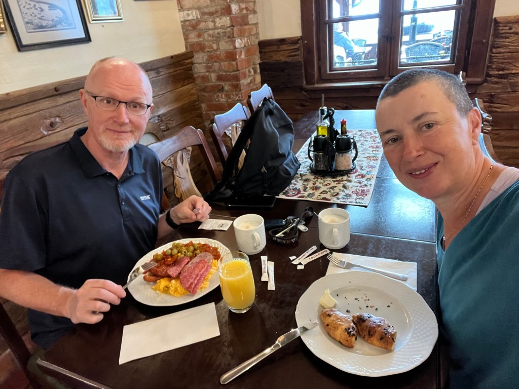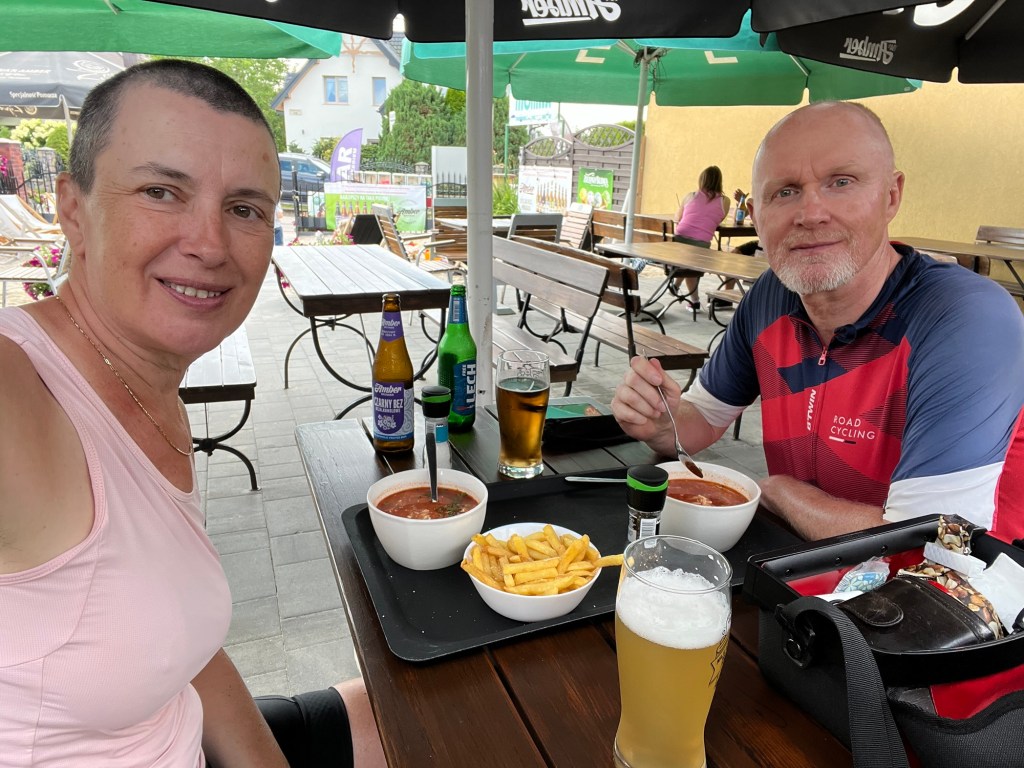Les Polonais nous ont souvent fait penser aux Danois : très peu souriants (moins encore que les Danois, je dirais, mais je n’avais pas emporté mon souriromètre), avares de mots inutiles, mais généralement très serviables. On a été très frappés aussi par leur manque de maîtrise d’une langue étrangère, à moins que ce soit une volonté de ne pas parler autre chose que polonais. A part près de la frontière allemande, où l’allemand était évidemment encore très présent, on a très vite été confrontés à des gens, même dans les hôtels et restaurants, qui ne nous parlaient que polonais. Les logiciels de traduction nous ont à quelques reprises été précieux, malgré les efforts et les progrès louables de Philipp en polonais.
