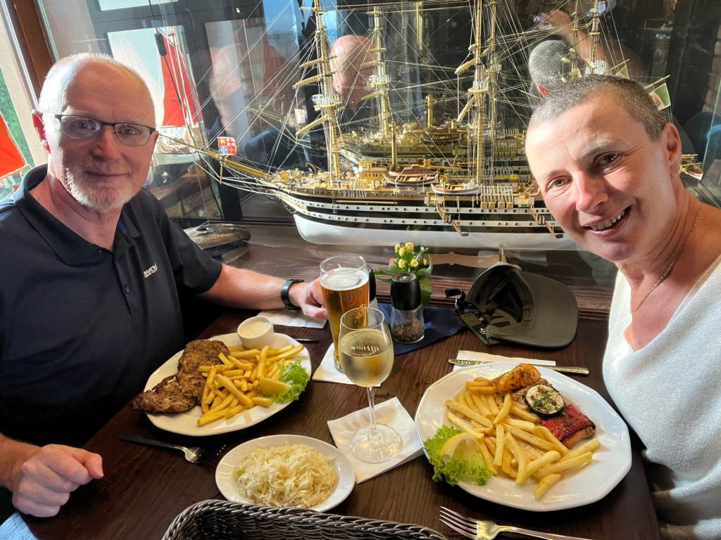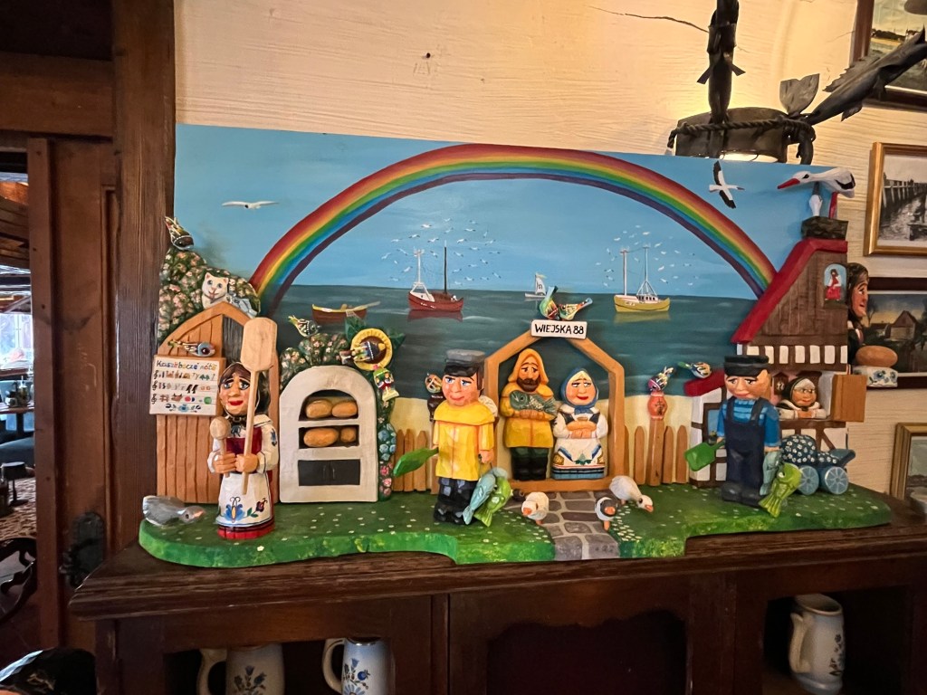 En ce qui concerne la nourriture, sans doute parce que nous longions la côte, nous avons surtout rencontré des restaurants spécialisés en poisson. Mais il y avait la plupart du temps quelques plats de viande, et avec un peu de chance, quelque chose de végétarien ! Parfois un burger végétarien, parfois une salade au haloumi ou des pierogi, sortes de raviolis farcis à un peu de tout, souvent des épinards, mais aussi des champignons, etc. A Gdansk, la cuisine était évidemment plus internationale.