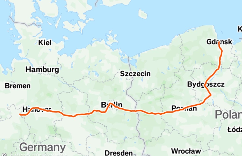 Au total, nous avons fait 893,37km de Rostock à Gdansk. Mais si on y ajoute les petits « morceaux » pour arriver à Rostock, pour revenir à Bruxelles et (une seule fois) pour aller manger au restaurant le soir, il faut ajouter 32,73km, ce qui nous fait un total général de 926,1km. En termes de dénivelé positif, « on est sur du » (tentative puérile de parler jeune) 3302m, 3462 si on compte aussi les petits morceaux.