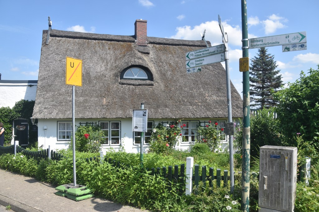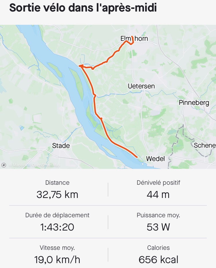 Finalement, on rejoint un canal, que l’on suit plus ou moins sans le voir – mais en voyant d’autres jolies choses ! – jusqu’à Elmshorn, qui disons-le tout de suite a l’air passablement moche. Il est 15h40, on a roulé 32,75km cet après-midi et on est morts de chaud !