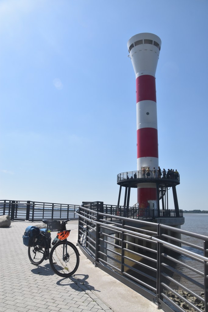 Du coup on papote un peu plus que d’habitude et on se met en route à 9h45 seulement. J’ai programmé Komoot pour qu’on retrouve la rive de l’Elbe sans problème, et c’est en effet ce qui se passe. On admire au passage les anciens entrepôts (la Speicherstadt) et les ascenseurs qui mènent au tunnel sous l’Elbe (celui que Philipp aurait voulu qu’on emprunte hier), puis on continue vers Blankenese, dernier endroit connu de Philipp en Allemagne du Nord.