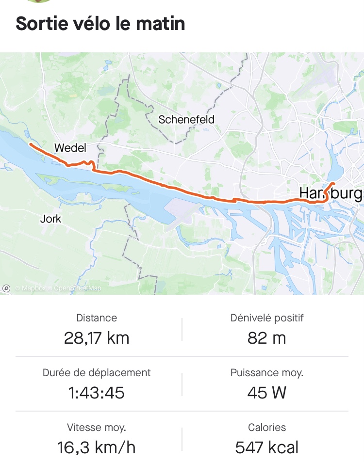 Nous retrouvons ensuite l’Elbe et une magnifique piste cyclable, et atteignons Blankenese à 11h20 après avoir roulé 16km.