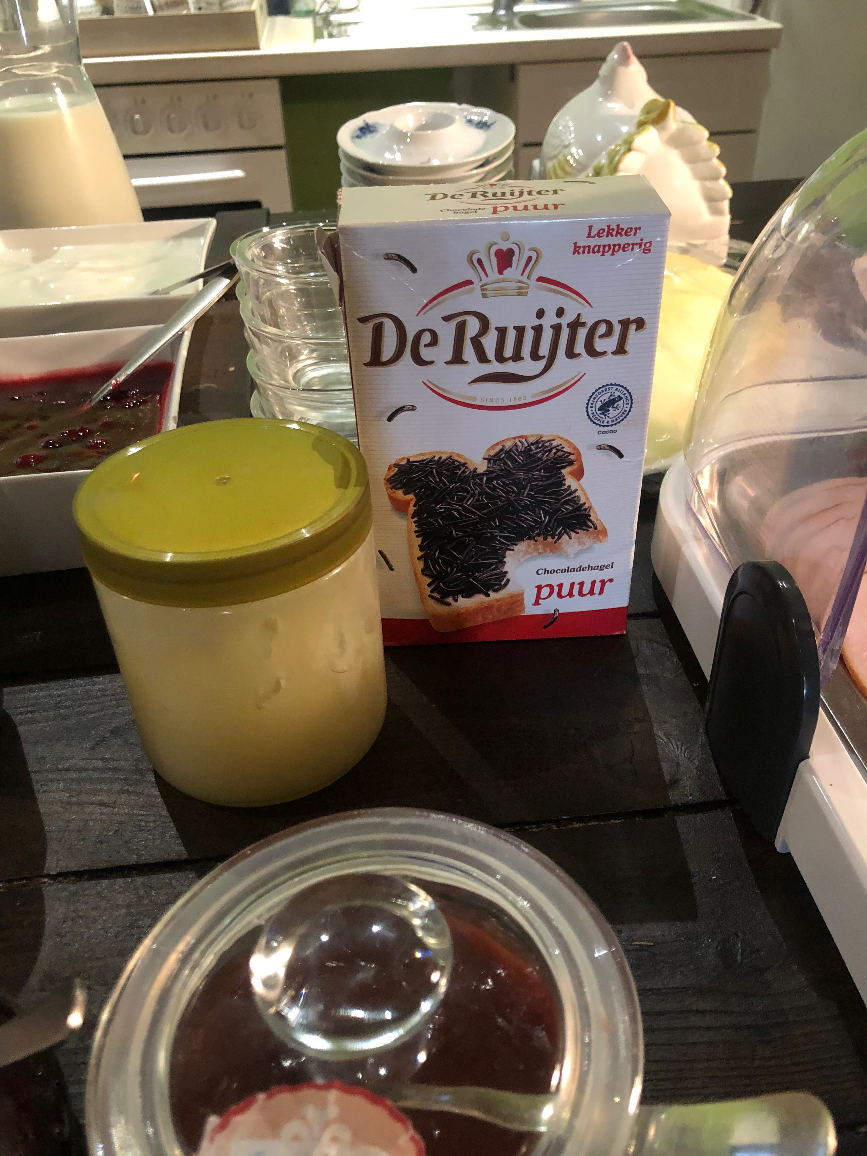 Il fait grand soleil, et comme un bonheur n’arrive jamais seul, il y a des granulés au chocolat noir De Ruijter au petit-déjeuner ! Je comprends pourquoi un peu plus tard, quand notre hôte vient faire un brin de papote avec Philipp : il est Néerlandais !