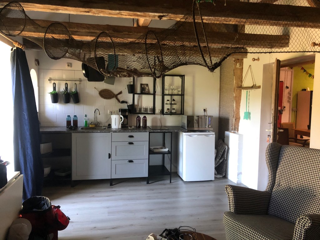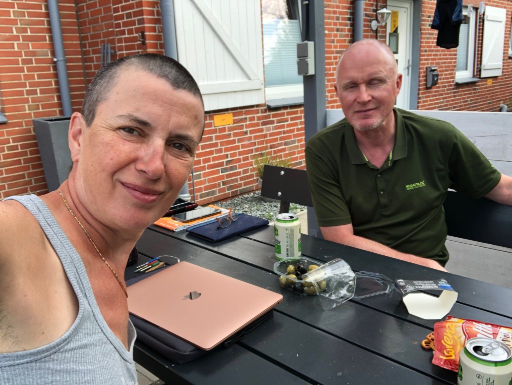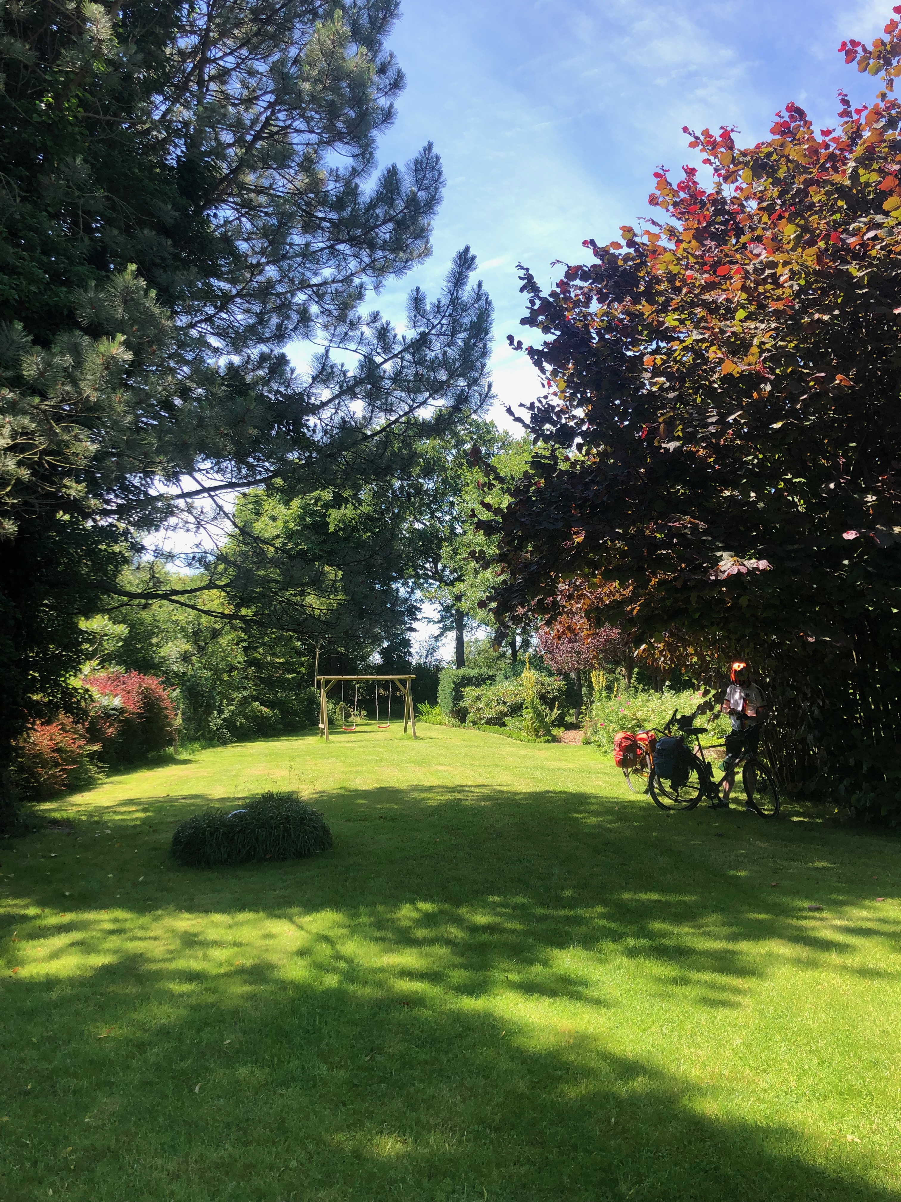 Une fois rassasiés, on repart, renonçant (au moins pour aujourd’hui) à poursuivre le tour de la presqu’île – je veux absolument écrire ma chronique pour Marianne aujourd’hui. On va donc directement à Garding acheter de quoi manger ce soir, puis on va à notre « pension » de ce soir, située à quelques kilomètres au sud de Tating. On y arrive vers 15h20, et ça a vraiment l’air très bien. Un petit jardin à l’arrière nous tend les bras, et c’est là que je m’installe, une fois douchée (et petite lessive faite) pour écrire ma chronique.