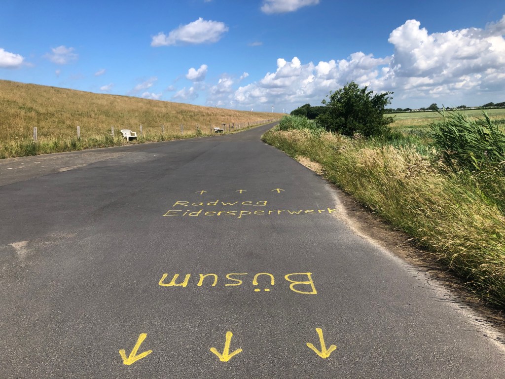Ensuite, après une nouvelle portion toute droite vent dans le dos, on arrive à une route qui passe au-dessus de l’Eider; sa partie cyclable a l’air toute neuve, car elle ne figure pas sur Komoot.
