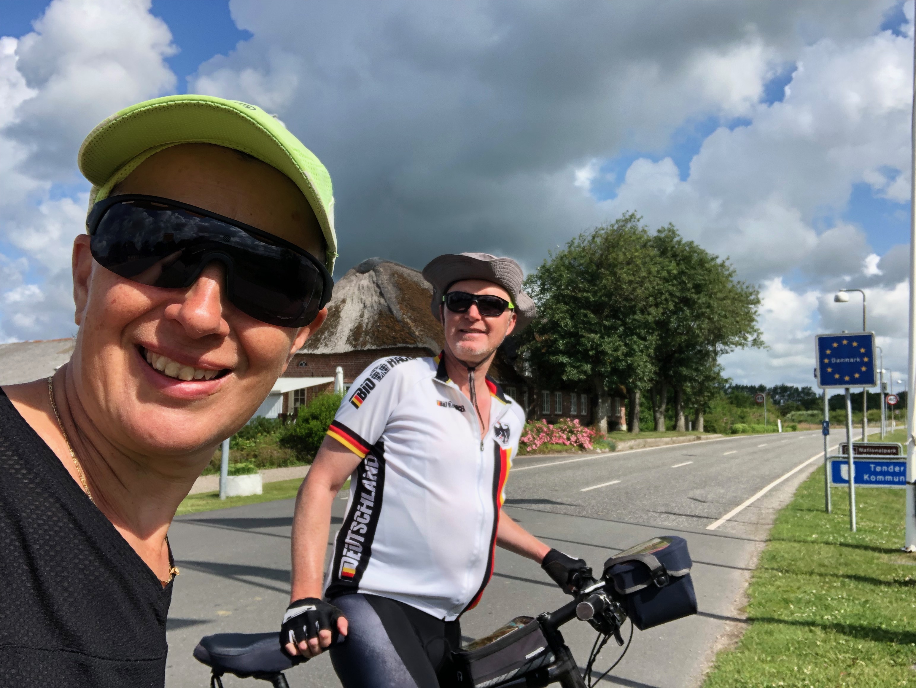 On arrive ensuite à la frontière, et on (enfin Philipp) échange quelques mots avec un couple de Néerlandais qui font le tour des villes de la Hanse et viennent de passer la frontière dans l’autre sens.