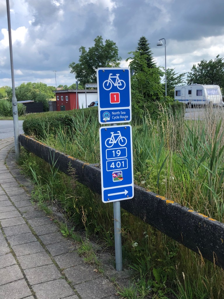 Peu après, on arrive à Højer, on tournicote dans le village à la recherche d’un café où s’arrêter, Philipp ayant un besoin impérieux… de se situer sur la carte. C’est un peu pénible parce qu’il y a des travaux et que plusieurs rues sont donc ouvertes, on doit donc rouler dans le sable ou les graviers.