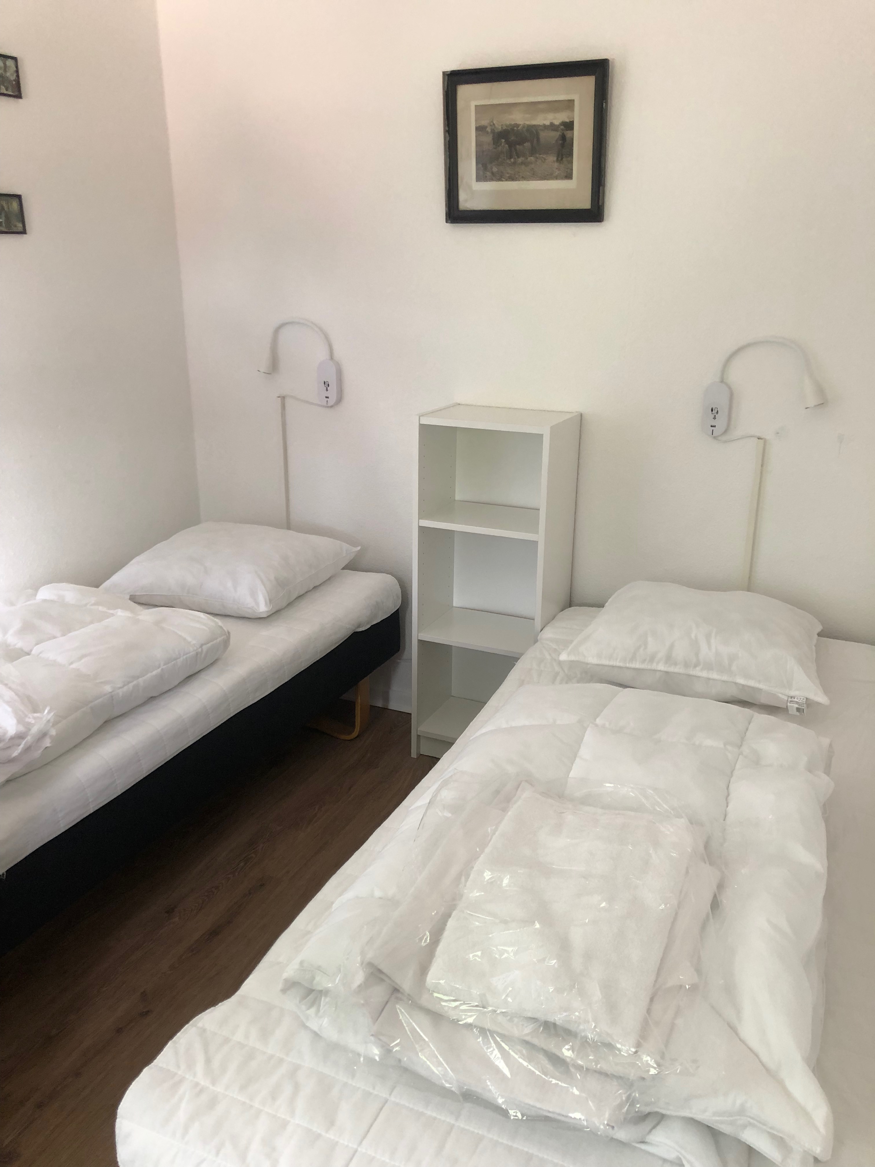 On loge dans un endroit composé de plusieurs bâtiments de plein pied, chacun abritant quelques chambres. La notre, le numéro 10, est vraiment rudimentaire : deux lits jumeaux, une table et une chaise, une petite étagère entre les deux lits, et c’est tout ! Pour les sanitaires, il faut aller dans le bâtiment voisin, où se trouve un local wc -douche qu’on partage avec nos voisins du numéro 9.