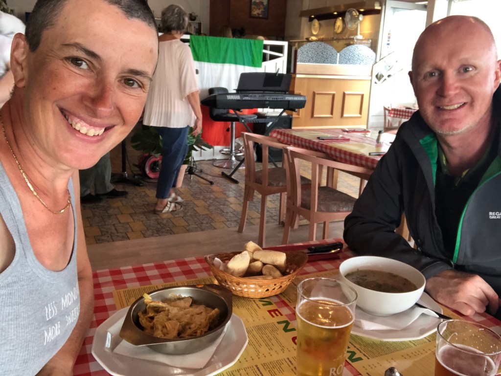 Avant de rire bêtement, souvenez-vous que 1) on n’a rien mangé à midi, 2) les restaurants, ici, ferment à 20h ou 21h grand max, et 3) on a 90 km dans les pattes, donc on est fatigués et affamés.