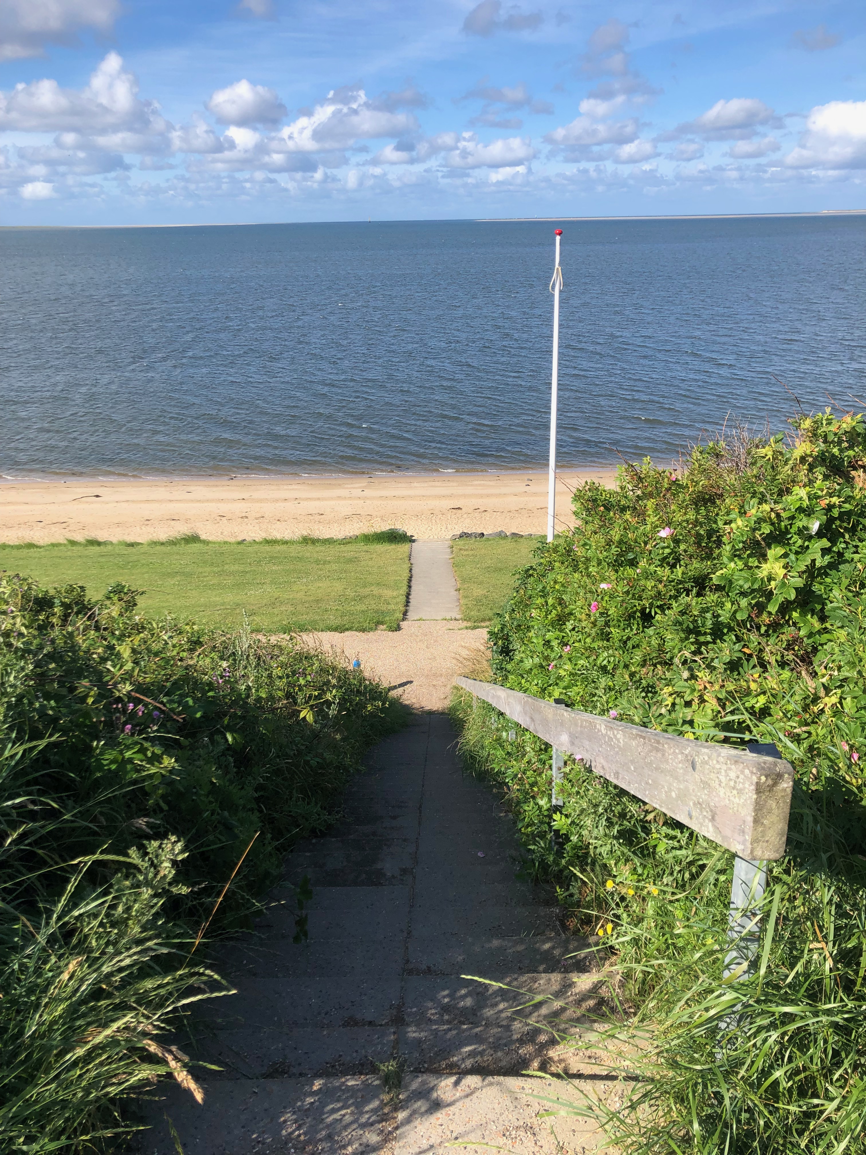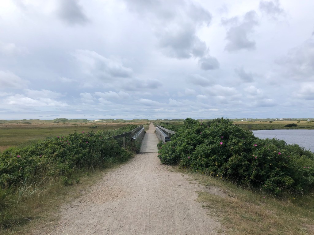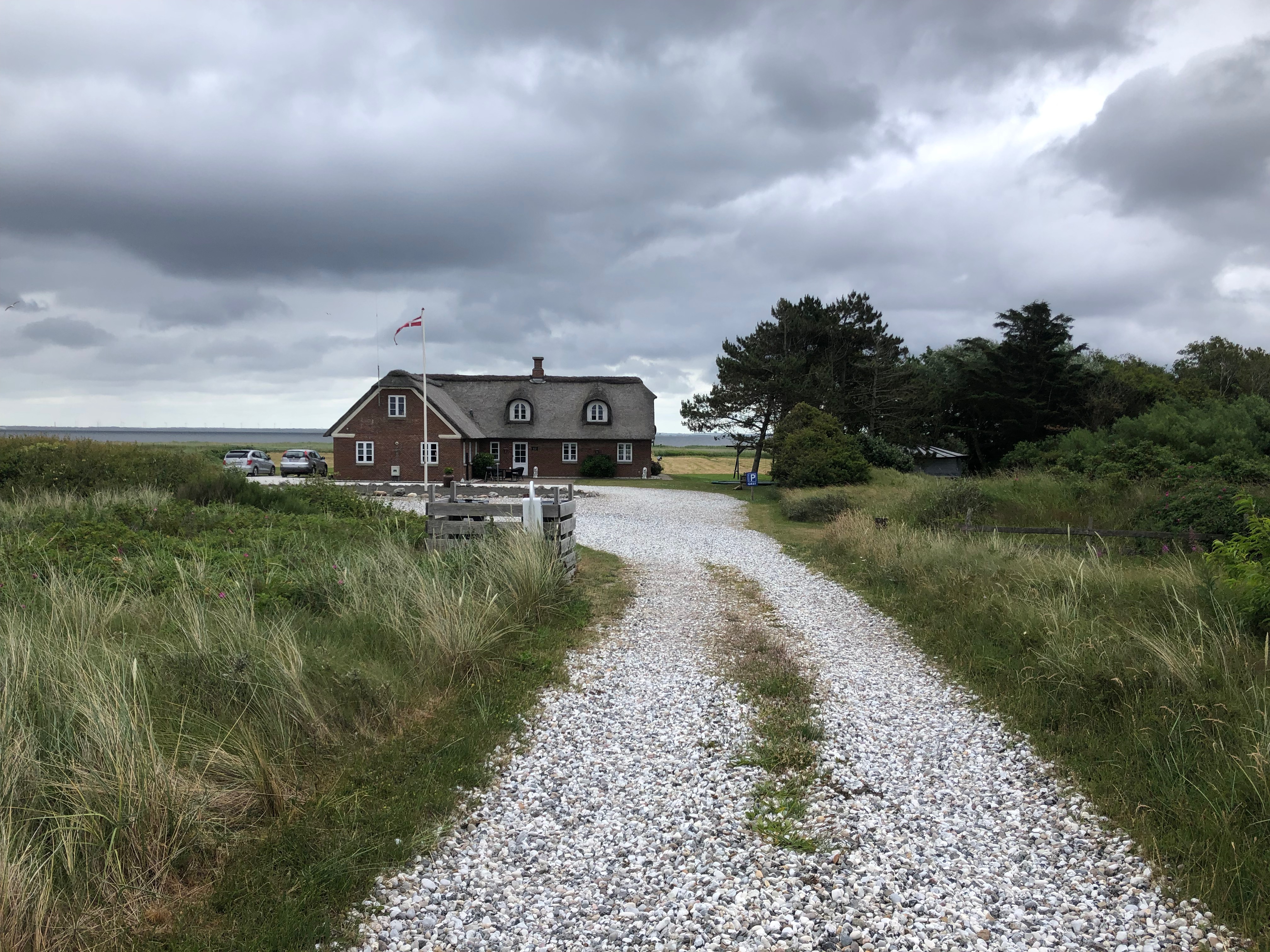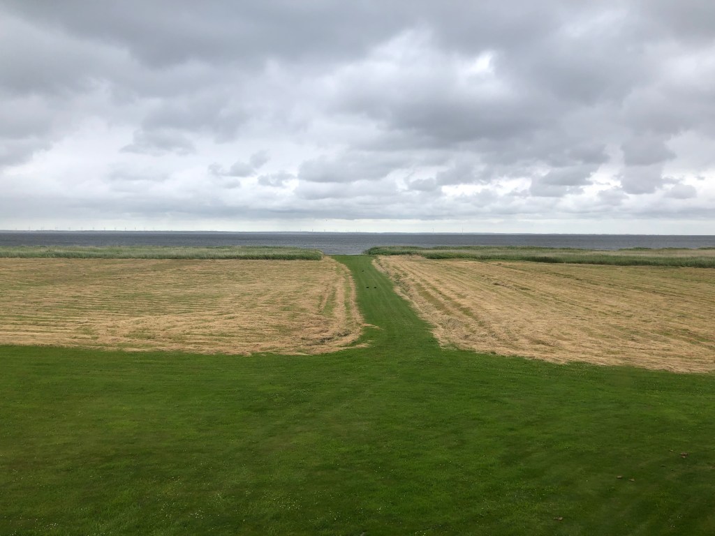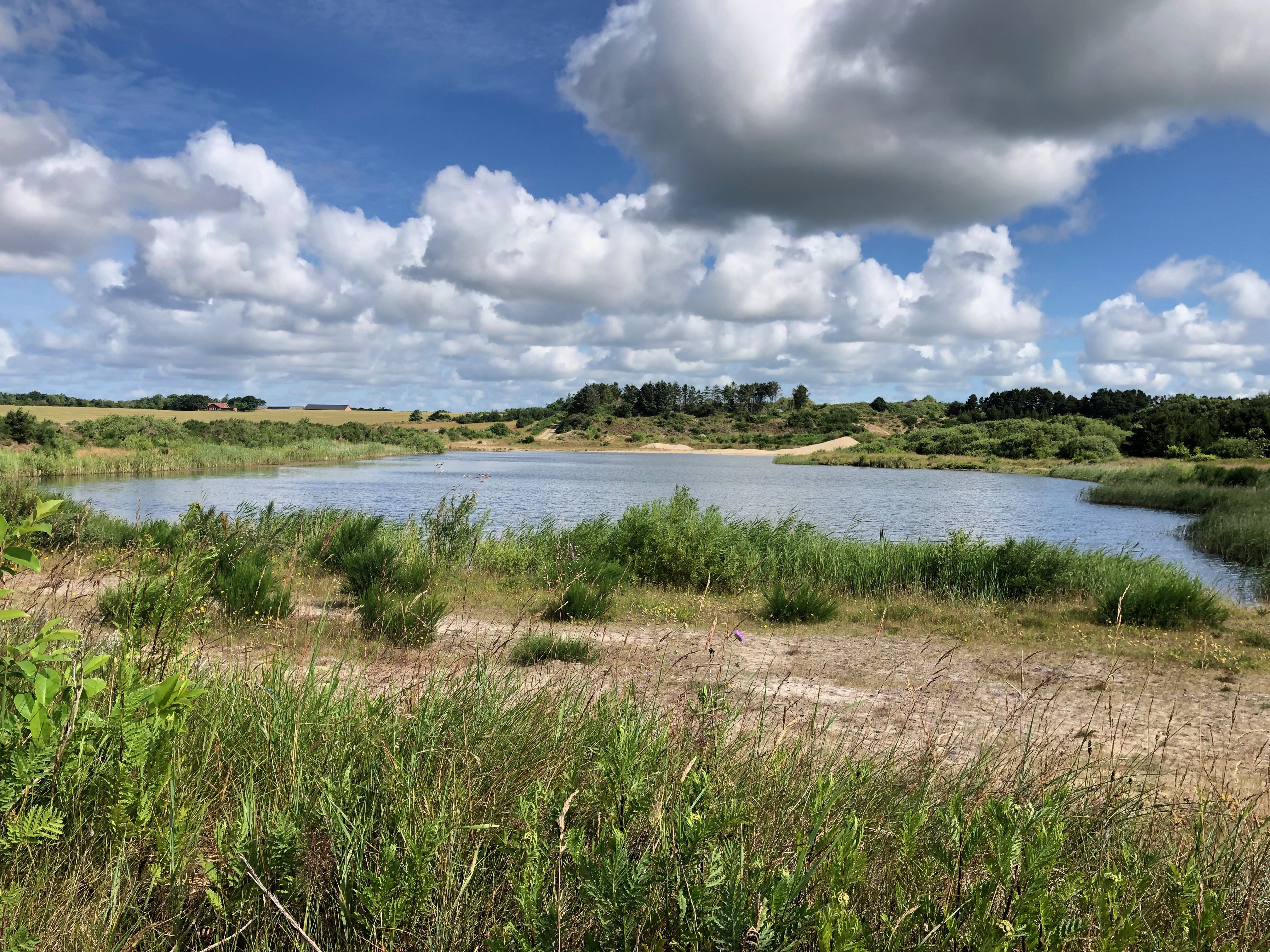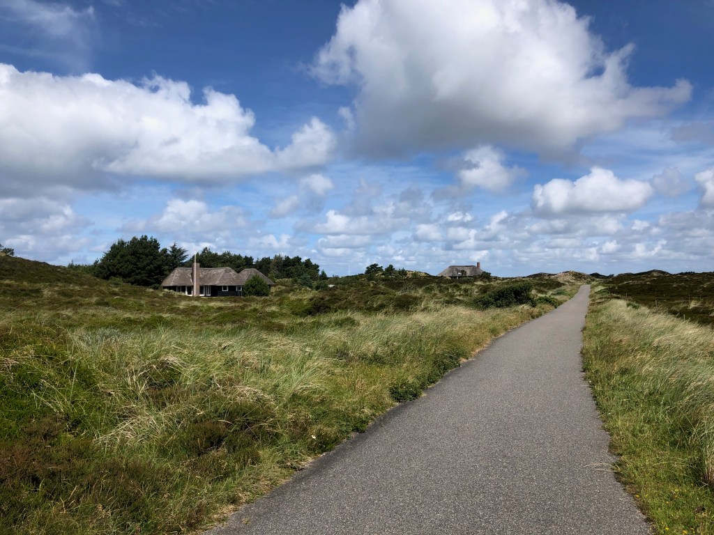 La route sur cette bande de terre où se situe Hvide Sande n’est pas des plus agréables : la plupart du temps, il n’y a pas de piste cyclable et on est donc sur la route, juste à côté des voitures qui nous dépassent en trombe. Mais c’est apparemment à peu près la seule voie asphaltée : toutes les rues qui en partent sont en réalité des chemins de cailloux, autant dire qu’on préfère pas ! On en a déjà eu quelques uns aujourd’hui, et c’est le seul bémol jusqu’ici à cette journée qui est vraiment, de notre avis commun, la plus belle de celles qu’on a eues depuis notre départ.