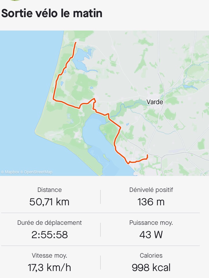Le vent est toujours très fort (hier, il soufflait à 33 km/h, aujourd’hui, si on en croit Strava, il est retombé à 21 km/h, mais ça reste quand même pas mal, surtout quand on l’a de face.)