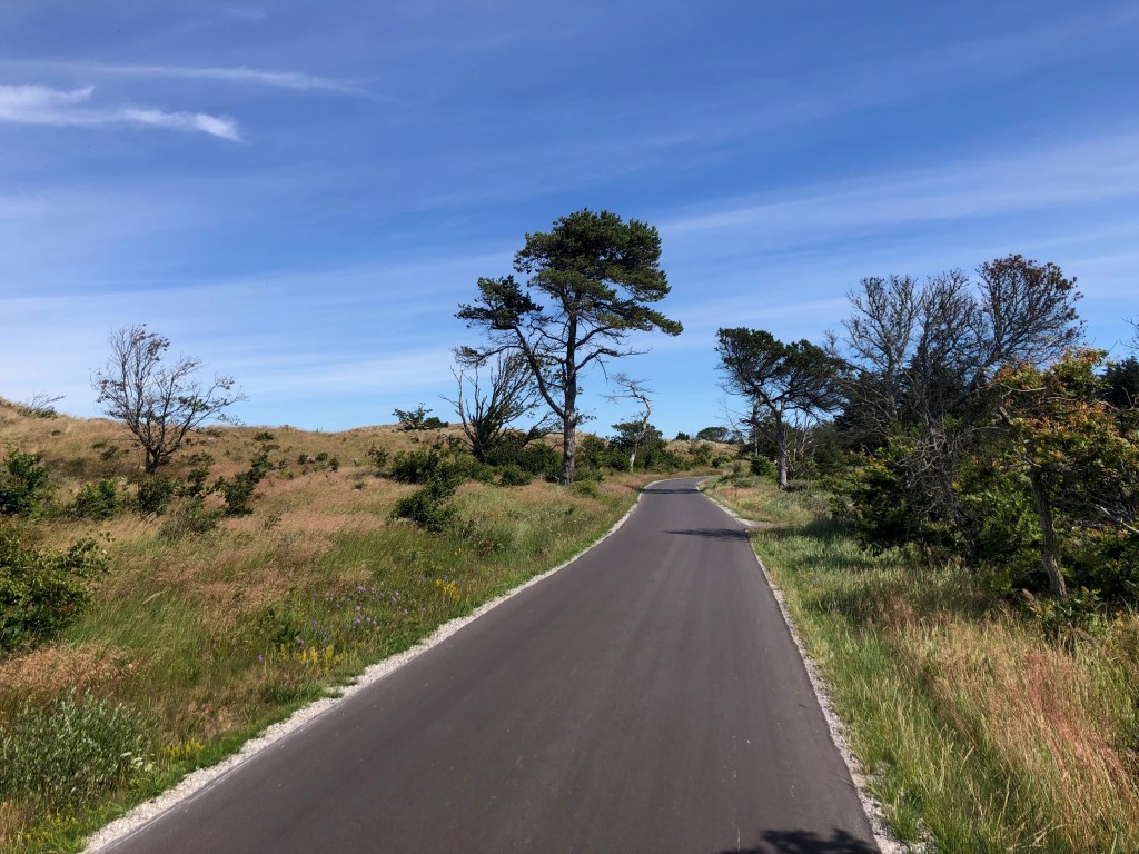 Et puis on est partis pour de bon, on a cafouillé un peu à la sortie de Hirtshals, puis on a retrouvé notre itinéraire, et tout s’est arrangé ! On a eu droit sur une petite dizaine de kilomètres à une magnifique piste cyclable asphaltée, sous un grand soleil et avec un vent plutôt dans le dos. Que rêver de mieux ?