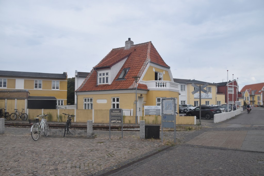 Cela dit, c’est la première fois qu’on est positivement frappé par l’architecture danoise. En général, on a surtout vu des chalets isolés de bois noir, ou alors des centres plus bâtis, mais à l’architecture assez hétéroclite, ce qui signifie que le plus laid côtoie le plus charmant, sans grande unité. Une seule chose semble typique ici, hormis les chalets en bois noir : les petites barrières de bois blanc entourant nombre de maisons.