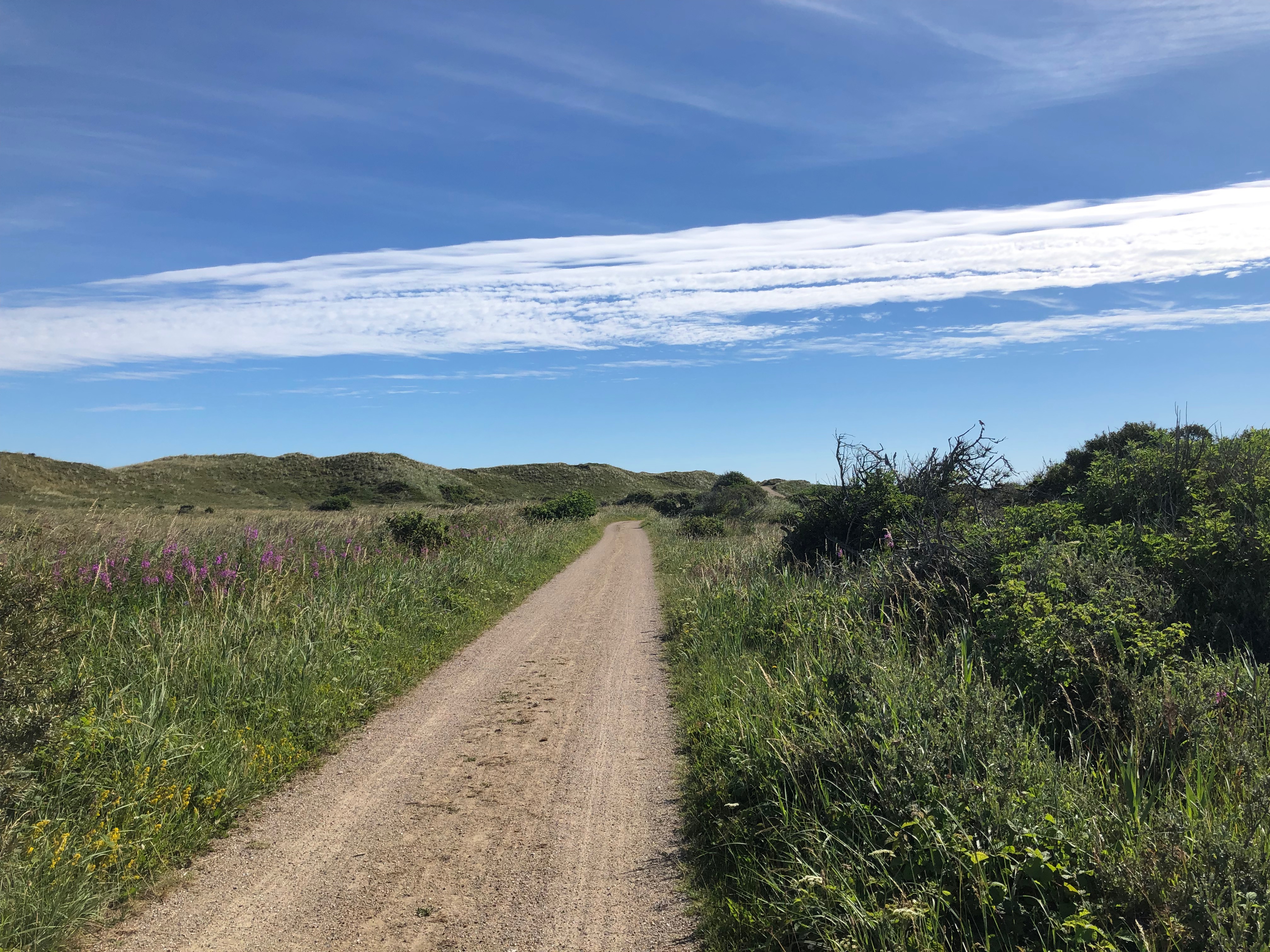 Et puis on est partis pour de bon, on a cafouillé un peu à la sortie de Hirtshals, puis on a retrouvé notre itinéraire, et tout s’est arrangé ! On a eu droit sur une petite dizaine de kilomètres à une magnifique piste cyclable asphaltée, sous un grand soleil et avec un vent plutôt dans le dos. Que rêver de mieux ?
