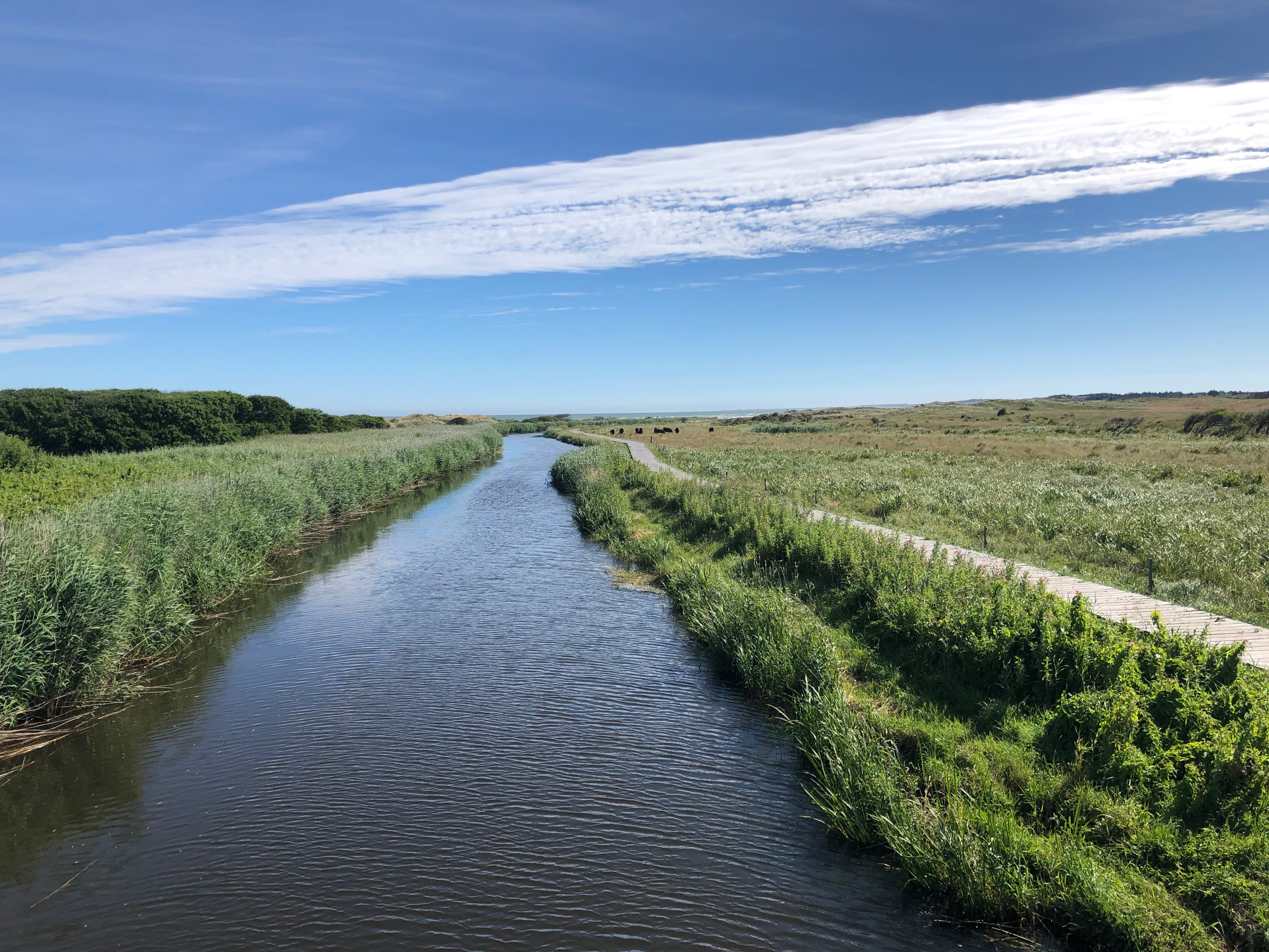 C’était de toute beauté, de temps en temps on apercevait la mer à gauche, des chevaux, des vaches, des moutons (même si globalement, il y a beaucoup moins d’animaux ici qu’aux Pays-Bas ou en Allemagne), et un moment donné, on n’a plus vu la mer du tout, mais on savait qu’elle était à la fois à gauche et à droite, puisque nous montions droit dans la fine pointe qui termine le Danemark.