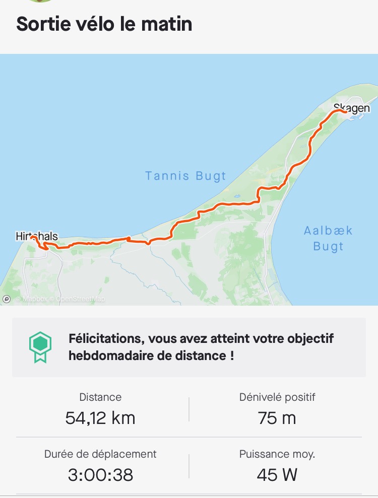 À 12h25, nous sommes arrivés à notre motel, le bien nommé Skagen Motel, où nous resterons deux nuits avant de repartir, côté mer baltique cette fois pour la « redescente ». On avait fait 54km, et j’avais faim !