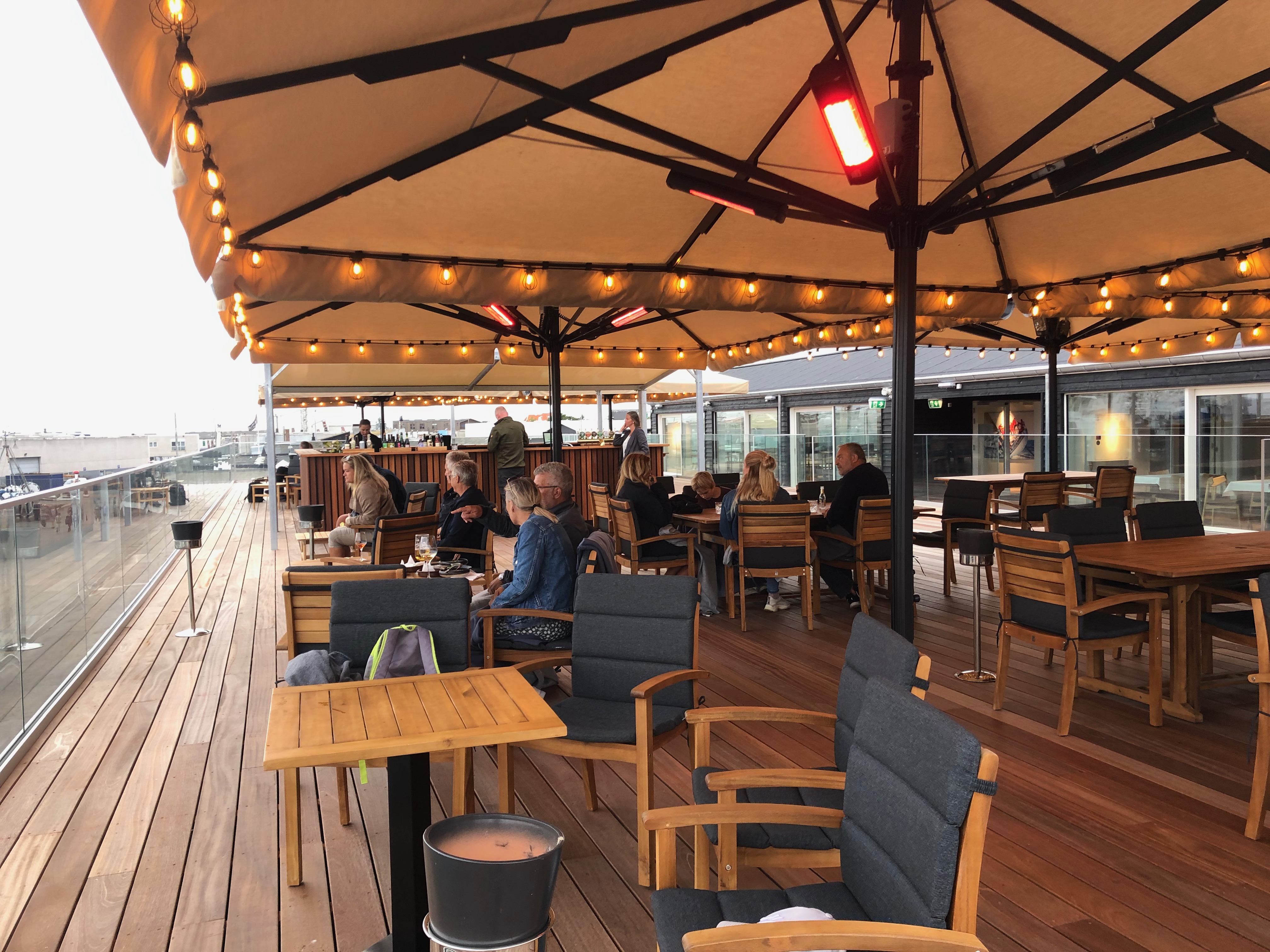 Ensuite, on est encore allés boire un verre au port, qui pour une fois offrait quelques possibilités. On s’est attablés à une terrasse située sur le toit d’un bâtiment, d’où on avait une vue imprenable sur la vie du port de plaisance.