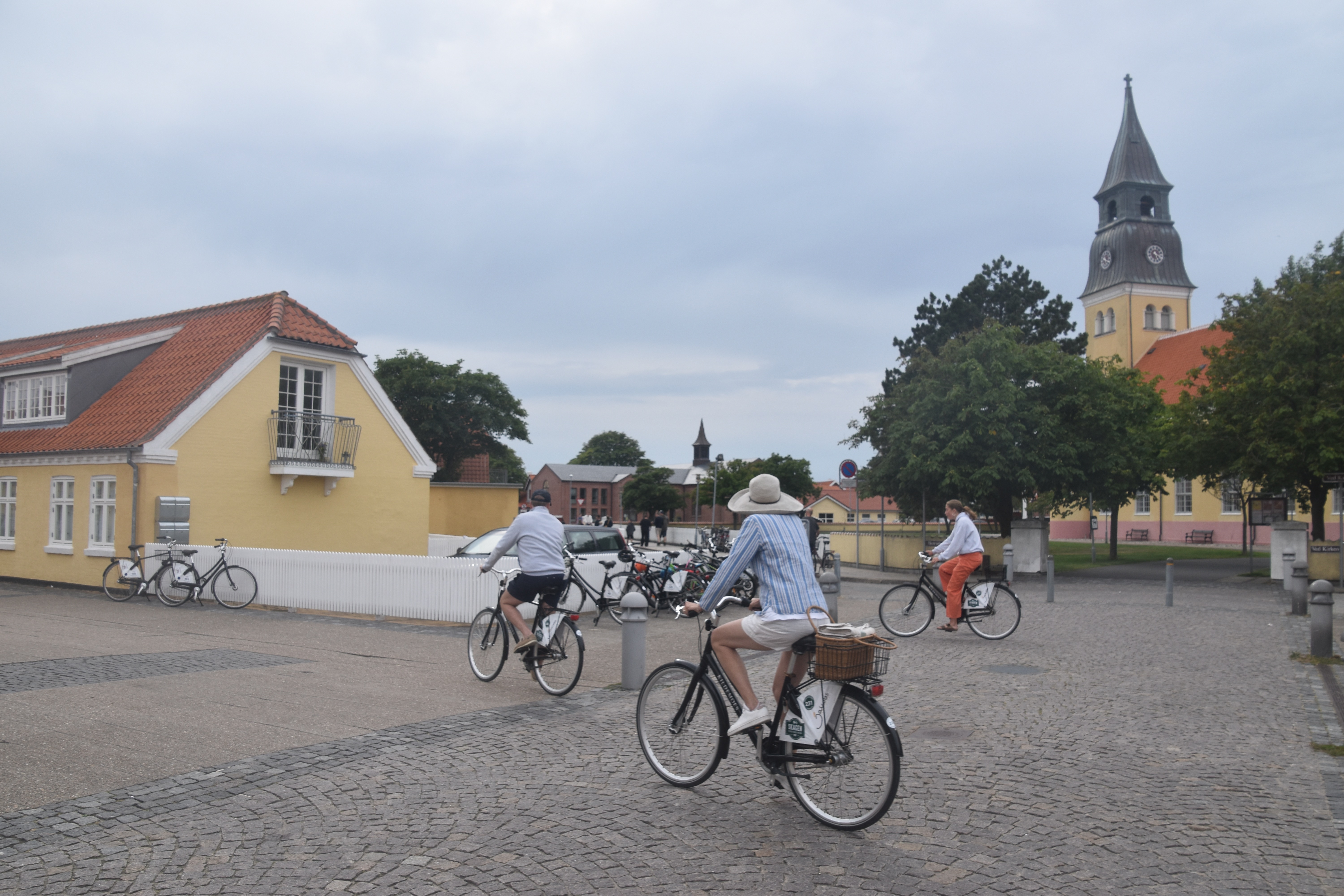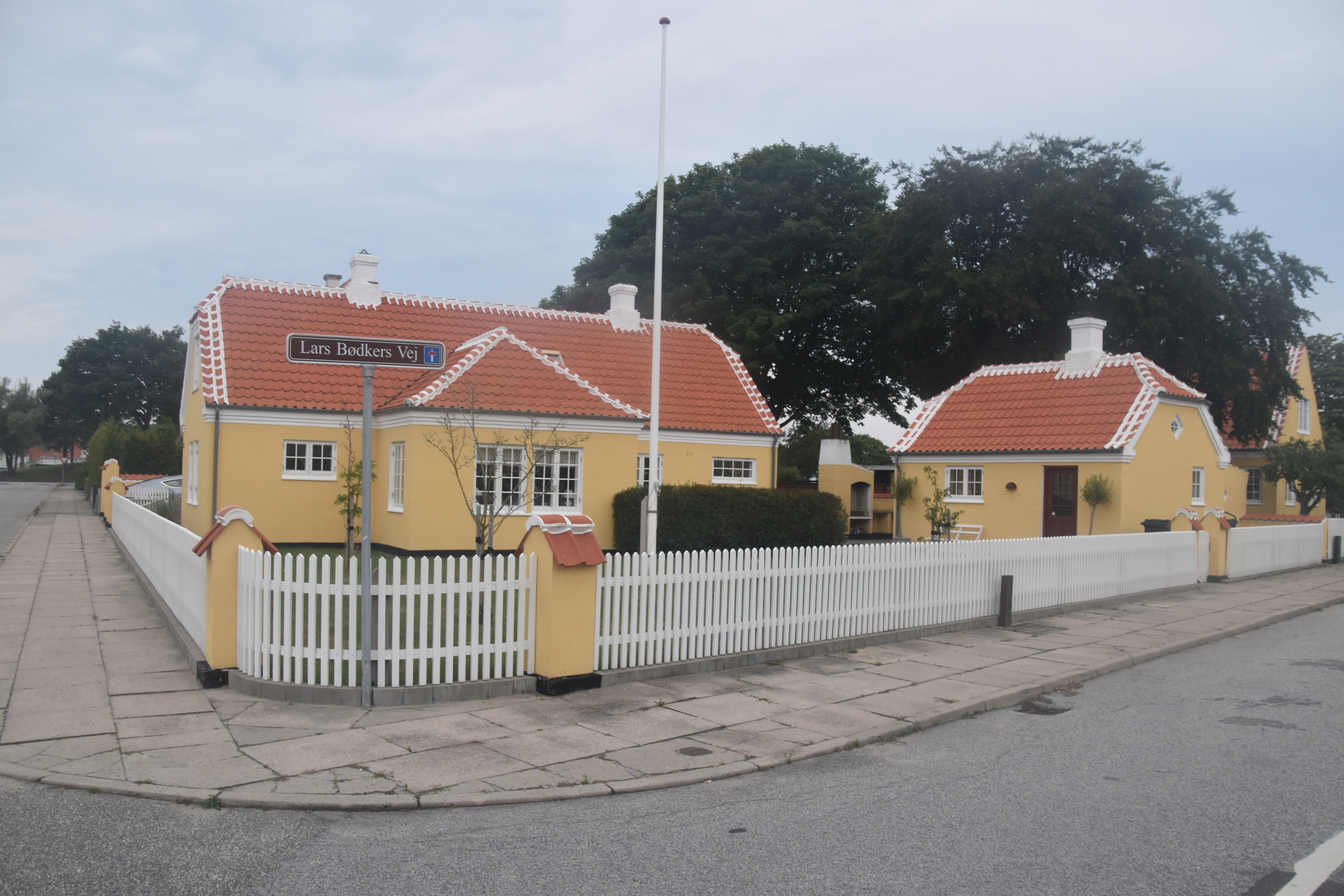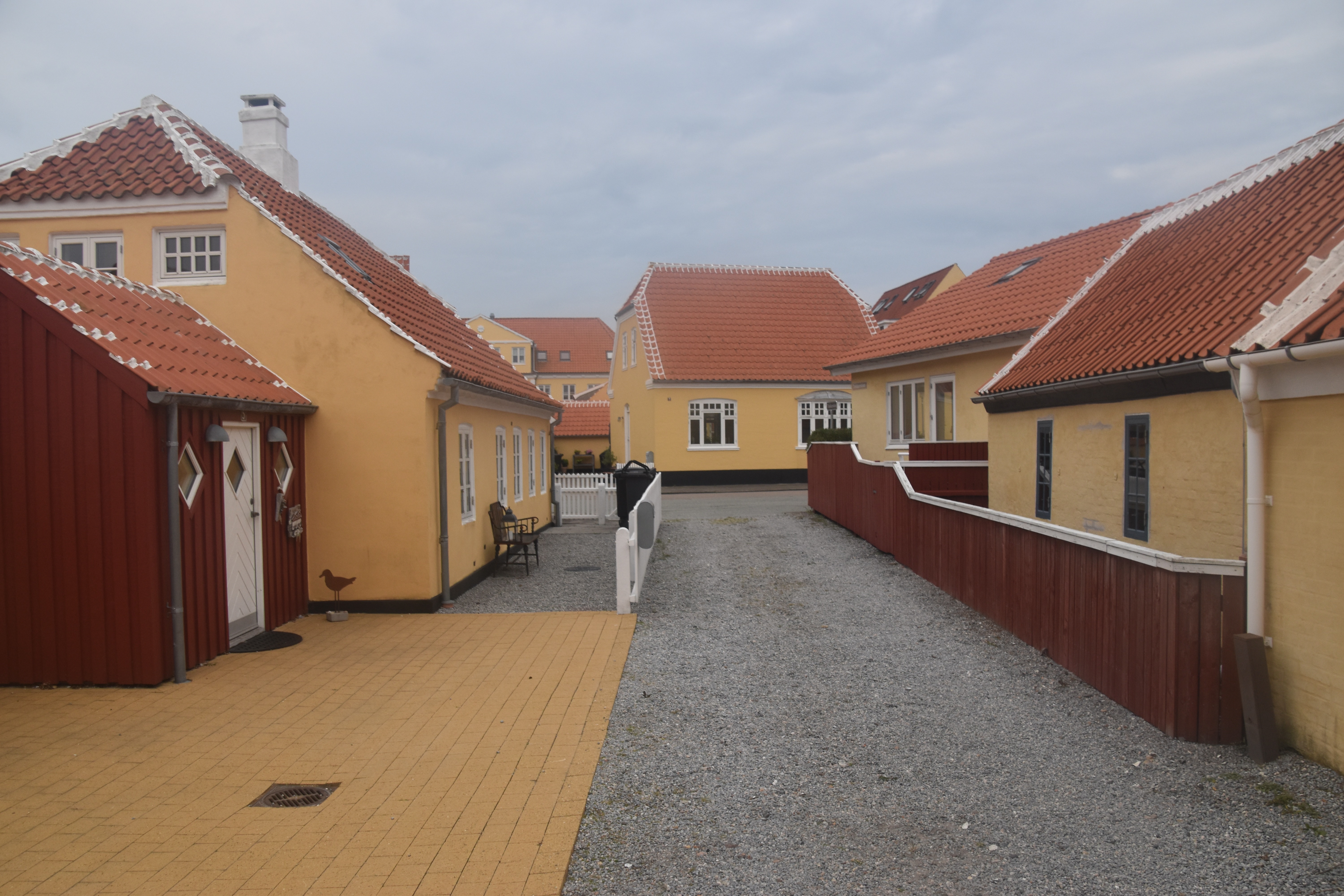 Cela dit, c’est la première fois qu’on est positivement frappé par l’architecture danoise. En général, on a surtout vu des chalets isolés de bois noir, ou alors des centres plus bâtis, mais à l’architecture assez hétéroclite, ce qui signifie que le plus laid côtoie le plus charmant, sans grande unité. Une seule chose semble typique ici, hormis les chalets en bois noir : les petites barrières de bois blanc entourant nombre de maisons.