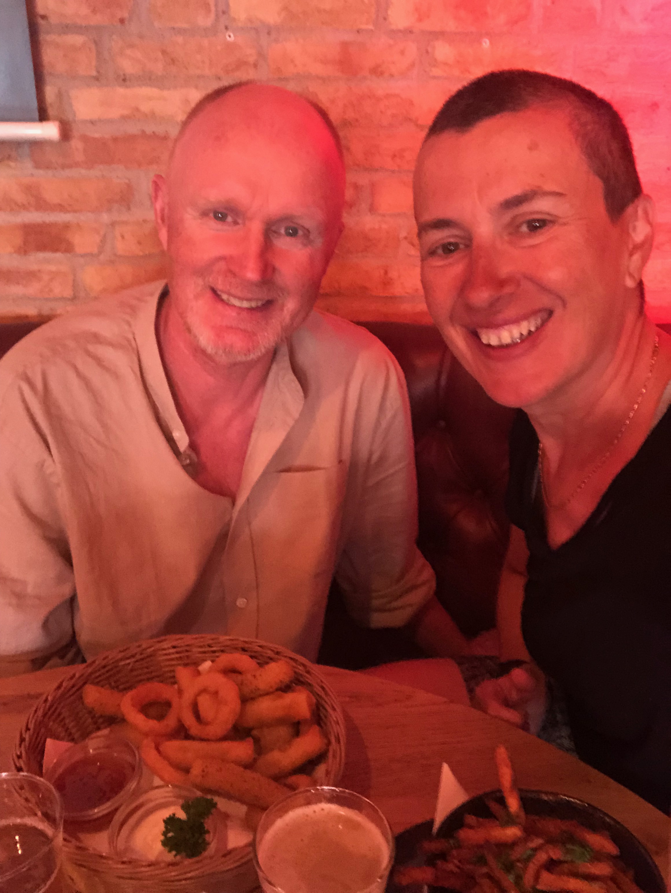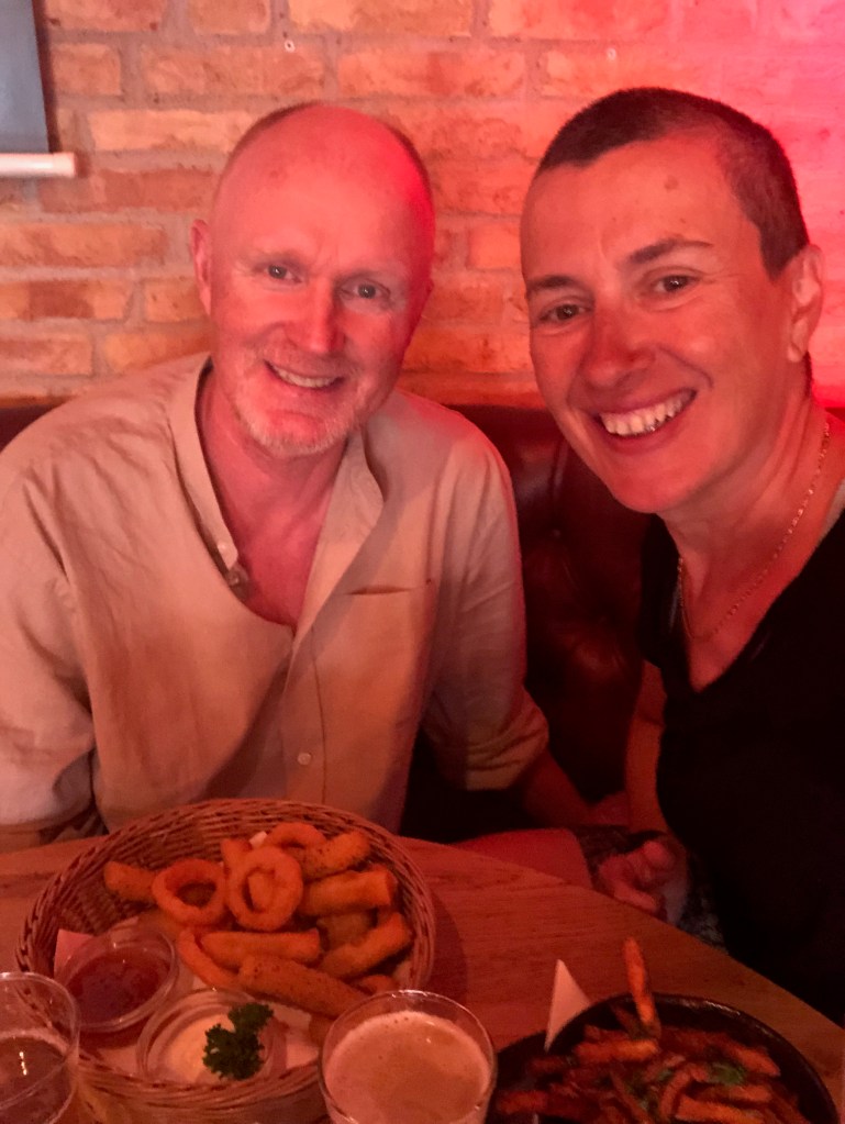 Ensuite, on est partis flâner, faire les boutiques, se perdre (je veux dire que j’ai perdu Philipp, mais ça va, je l’ai retrouvé), constater que la mode féminine danoise est certes intéressante, mais pas vraiment mon genre (ouf, de toute manière je n’ai pas vraiment de place dans mes sacoches !), puis manger au Green’s un petit snack à la fois roboratif et diététique : diverses fritures (oignons frits, bâtons de mozzarella frits, mini loempias et frites de patates douces) et bière sans alcool.