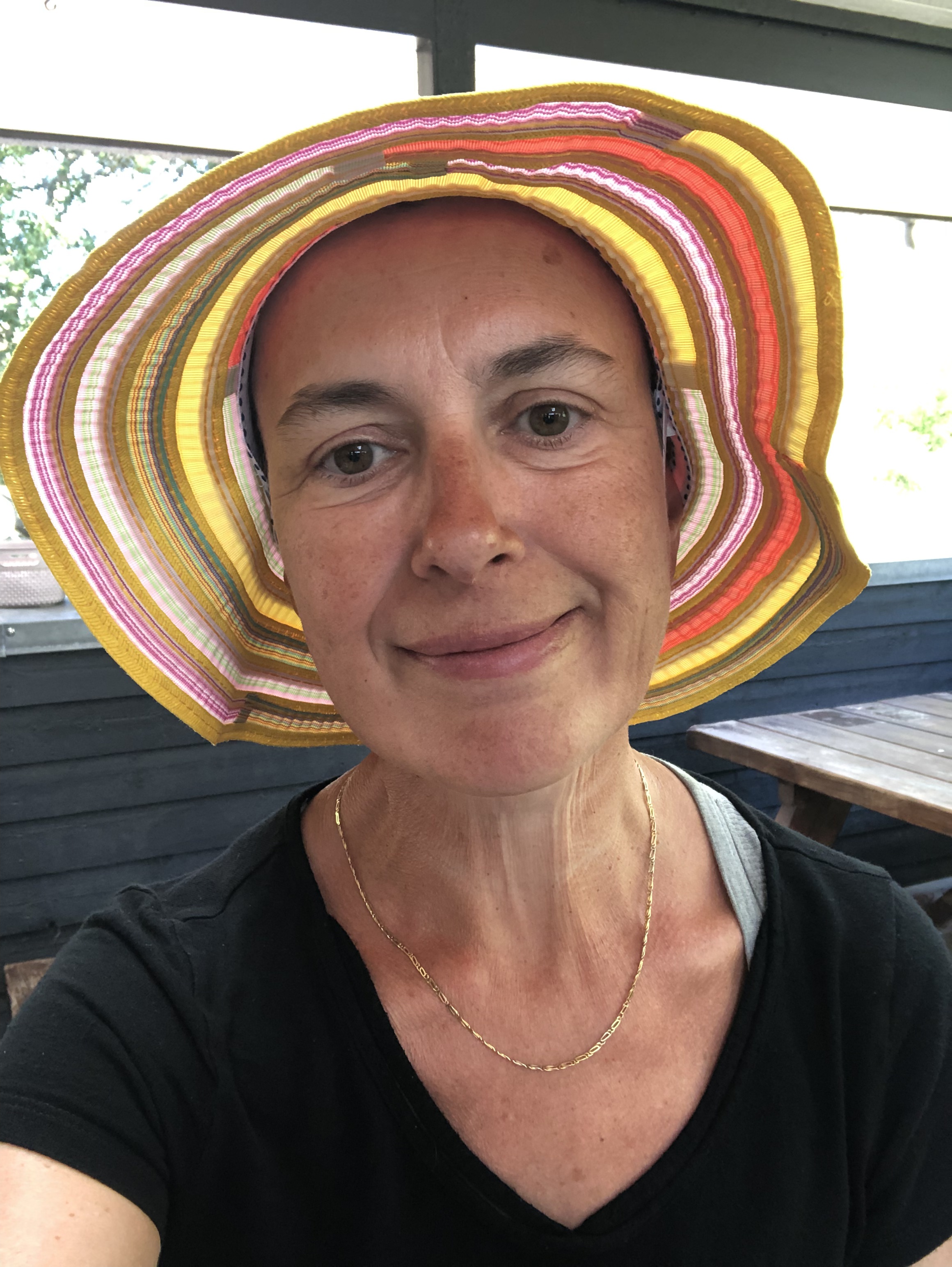 N’empêche, si l’histoire est triste, l’endroit est superbe, en plein milieu d’une réserve naturelle, où l’on retrouve ce mélange, bien connu de nous maintenant, de lande et de forêt de conifères. On s’y balade un peu, puis, en attendant le bus pour rentrer, on s’offre une glace (lui), un café et un chapeau (moi).