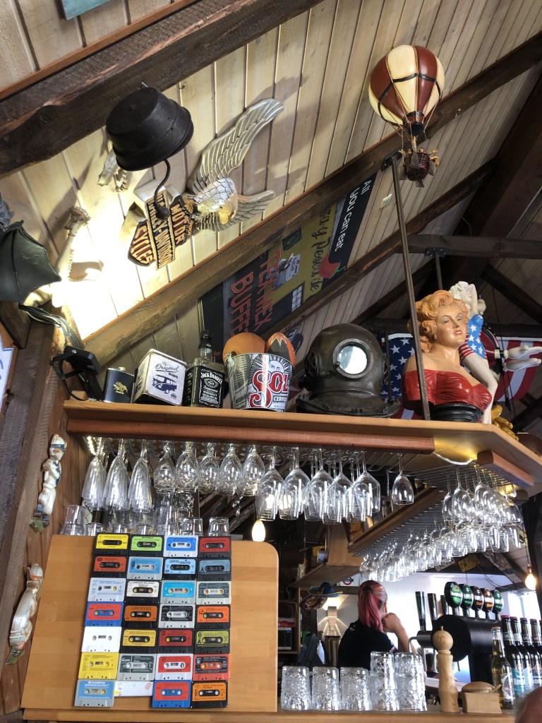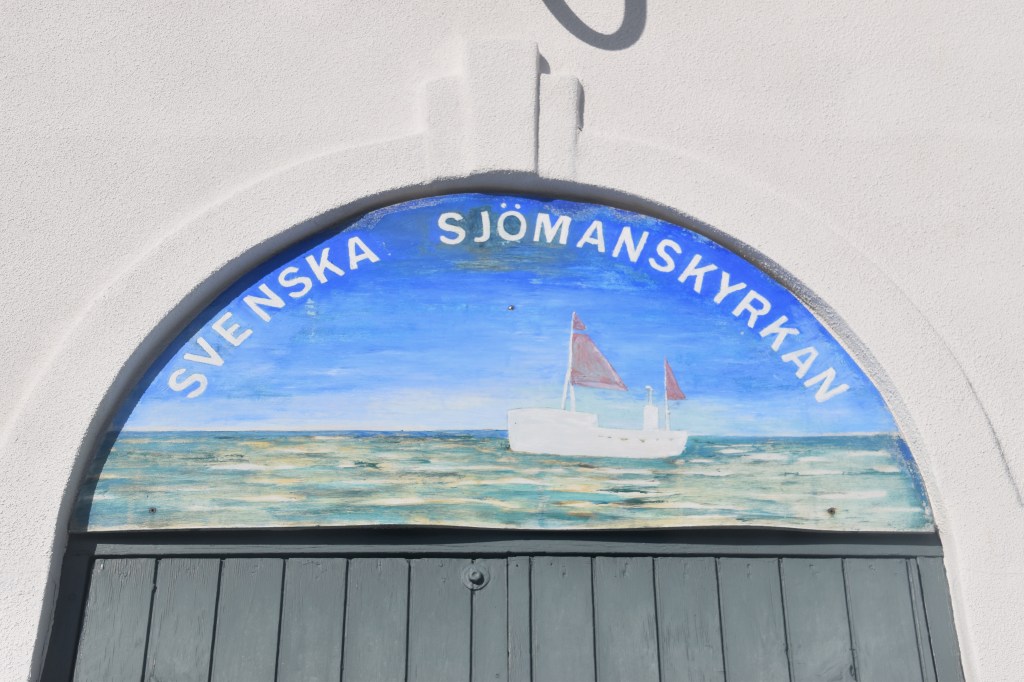On prend le bus jusqu’à l’arrêt « Svenske Sømandskirke », car je tiens absolument à aller voir cette église suédoise de marins, très logiquement située à deux pas du port. Elle est malheureusement fermée à cette heure, on se contente donc d’y jeter un oeil de l’extérieur avant de rejoindre le centre ville, où on va manger un hamburger au Mcknudsens Restaurant, à la décoration assez originale, jusqu’aux portes des toilettes d’ailleurs !