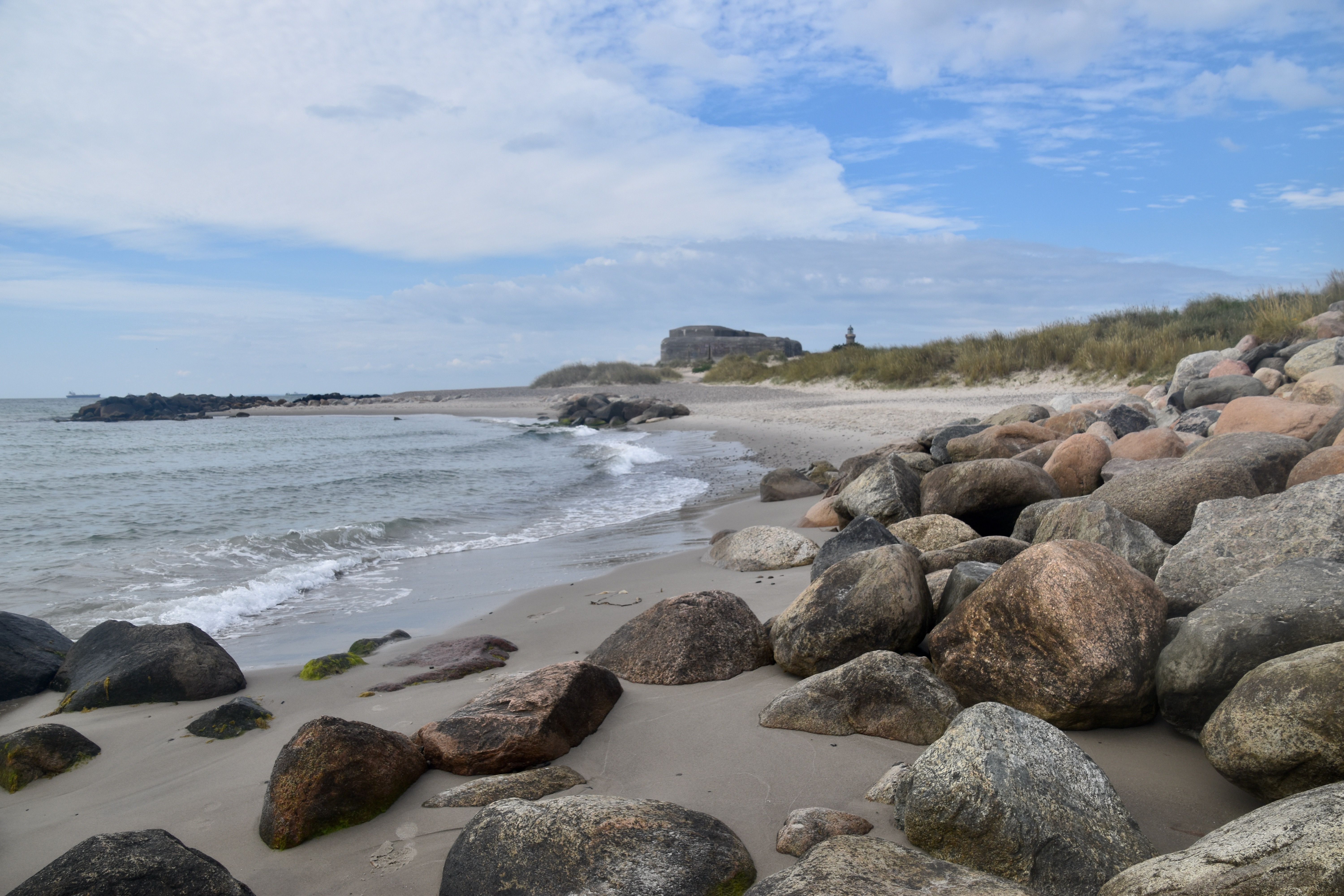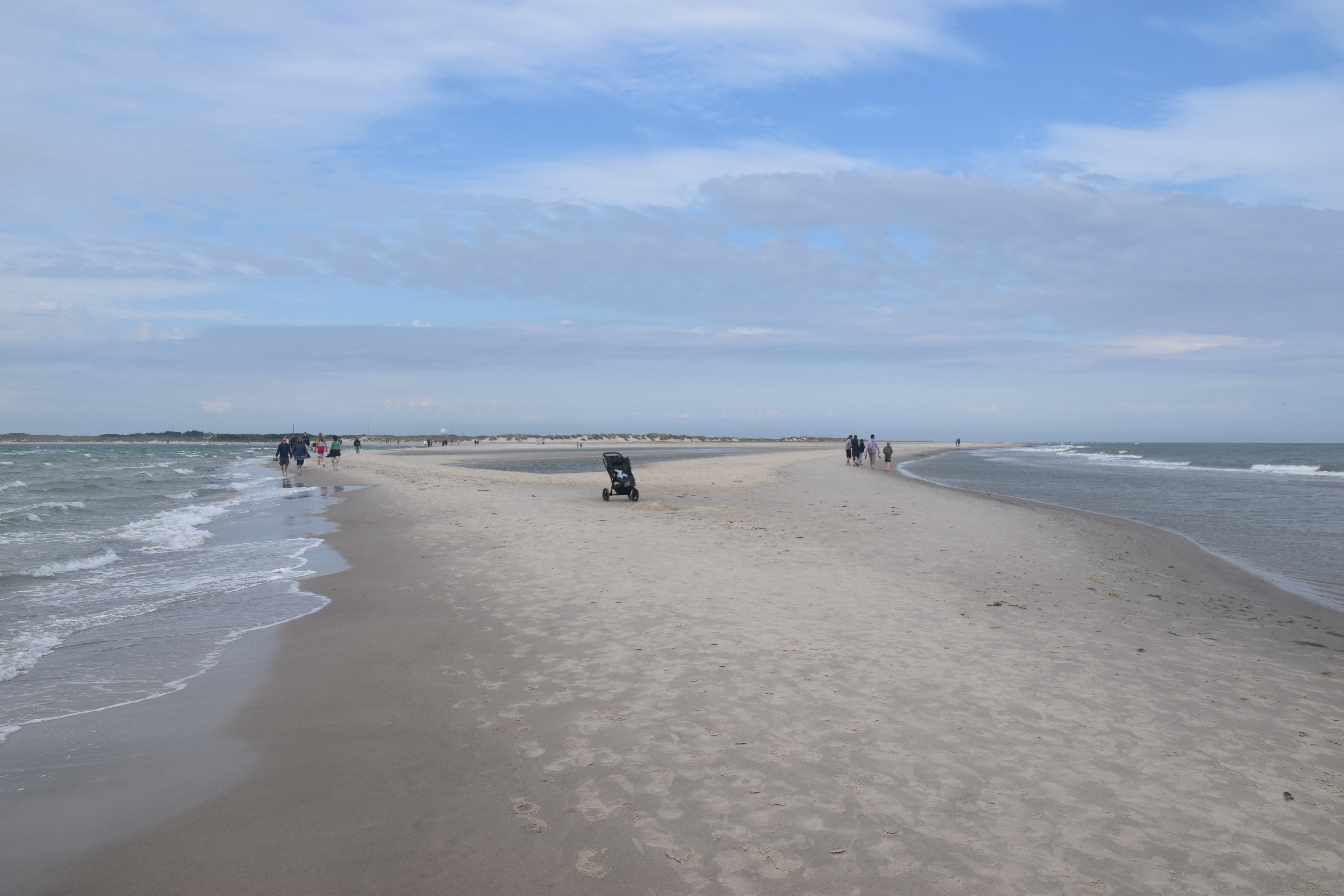 En effet, on voulait absolument aller jusqu’au bout du bout du Danemark, à savoir Grenen, qui est l’endroit où la mer du Nord et la mer Baltique se rejoignent de part et d’autre d’une étroite bande de sable sur laquelle on peut marcher. Un truc un peu magique pour les gens qui, comme moi, veulent toujours aller « au bout » (de la jetée, de la digue, du ponton, de n’importe quoi qui a une fin qu’on voit très bien à vingt ou à deux cent mètres, mais qu’il faut absolument que j’atteigne).