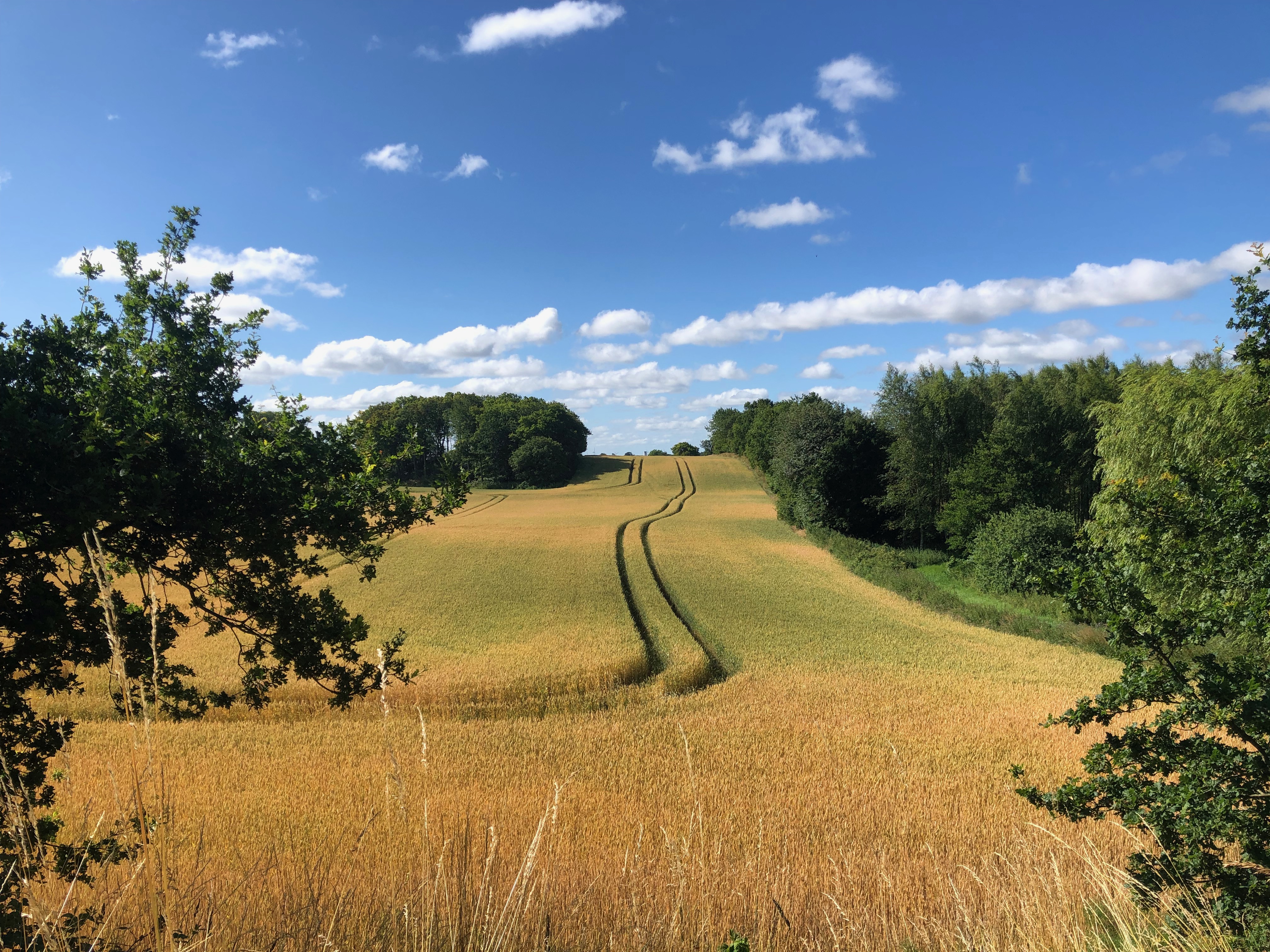 On fait un bref arrêt près d’une grande ferme, et la propriétaire des lieux vient spontanément nous proposer de remplir nos gourdes au robinet, ce qu’on accepte avec reconnaissance : l’inconvénient des pique-nique dans la nature, c’est qu’on ne peut pas se réapprovisionner en boisson. On papote un peu, la dame est curieuse de savoir où on vient, Philipp lui dit « Hadsund », elle ne voit absolument pas ce dont il parle, il répète, et elle finit par comprendre et prononcer à sa manière. On comprend soudain pourquoi certaines mauvaises langues prétendent que le danois n’est pas une langue, mais une maladie du larynx…