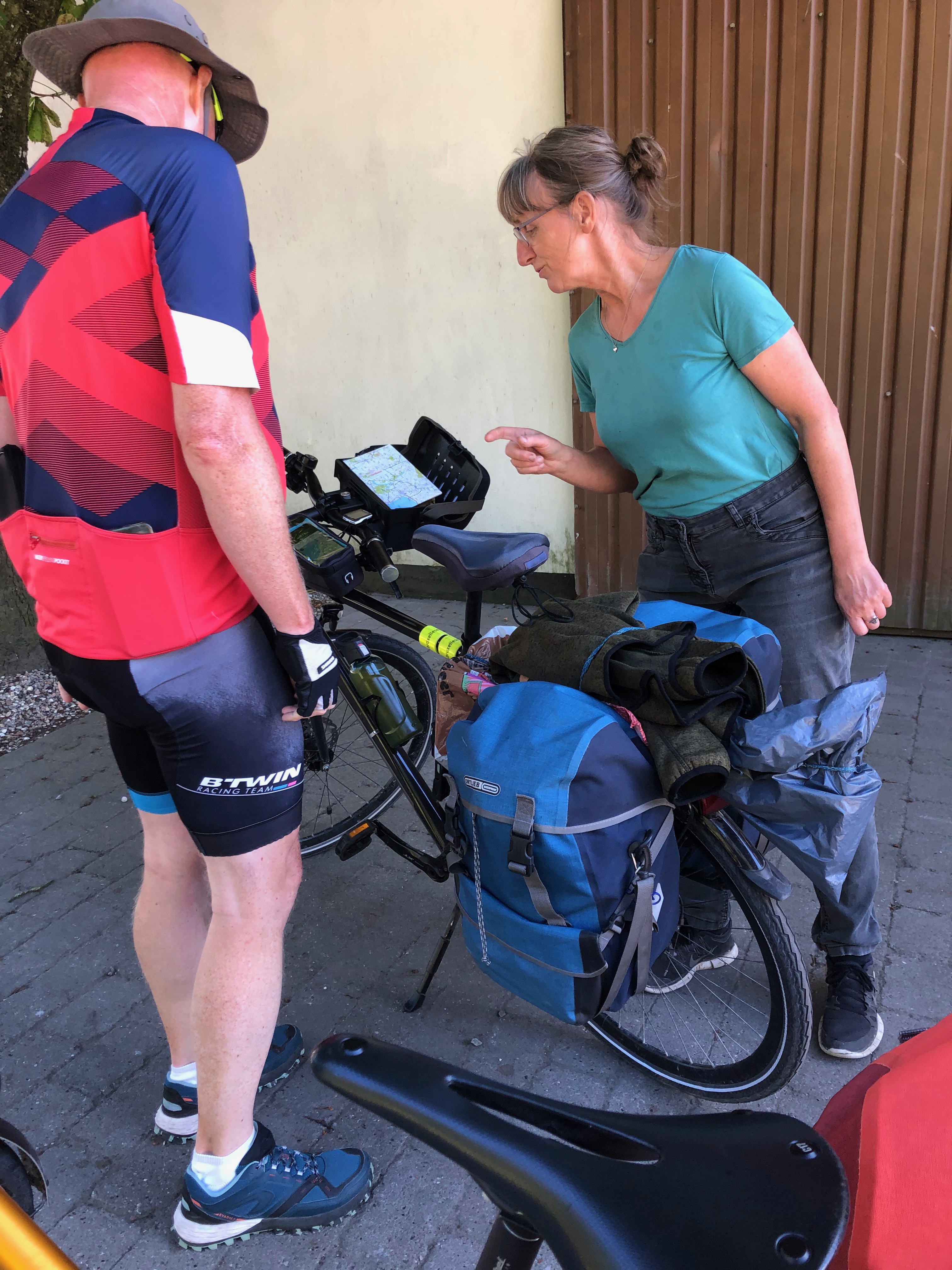 On se met en route vers 9h, non sans que j’aie gonflé déjà deux fois mon pneu avant : je l’avais regonflé en quittant le B&B, mais une heure après, en sortant de l’hôtel situé à 100m, il était de nouveau tout flapi. Ça s’annonce mal…