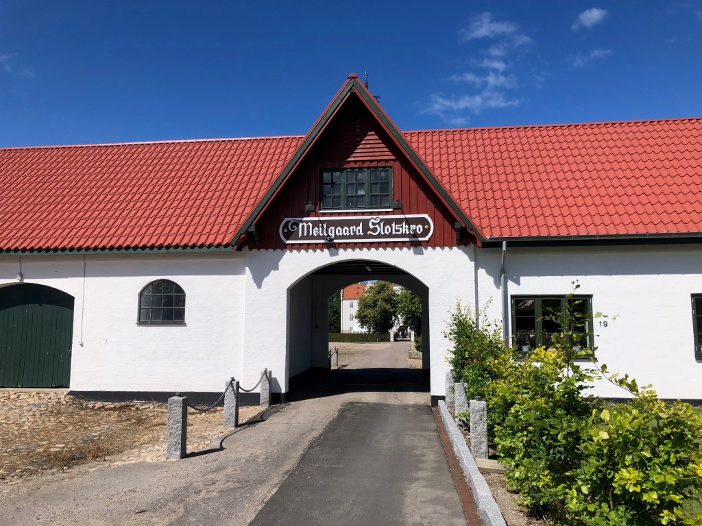 On fait encore un petit arrêt à un château, le Meilgaard, quelques kilomètres avant d’arriver. Juste comme on s’arrêtait pour le photographier, un cycliste local nous en a longuement expliqué l’histoire, on va donc y jeter un oeil.