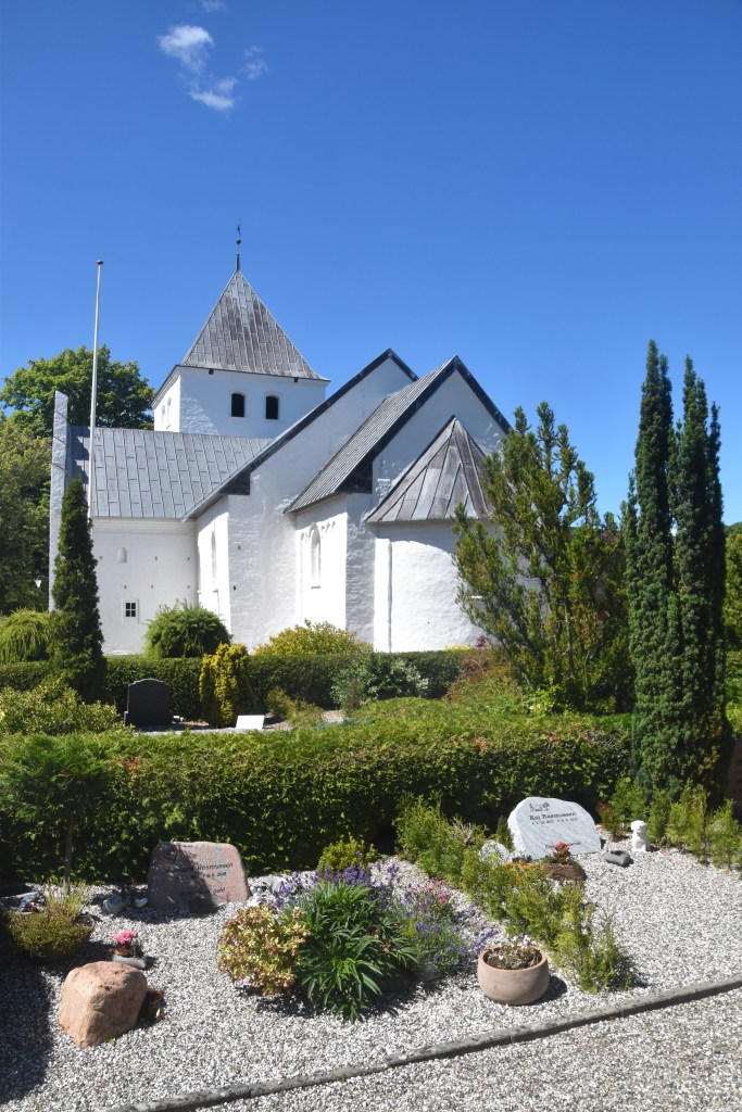 J’aurais bien visité l’église, mais elle est fermée, apparemment pour cause de mérule. Le cimetière est très joli, et j’aime beaucoup les tombes danoises, généralement des sortes de jardinets, pas de tombes, juste des stèles.