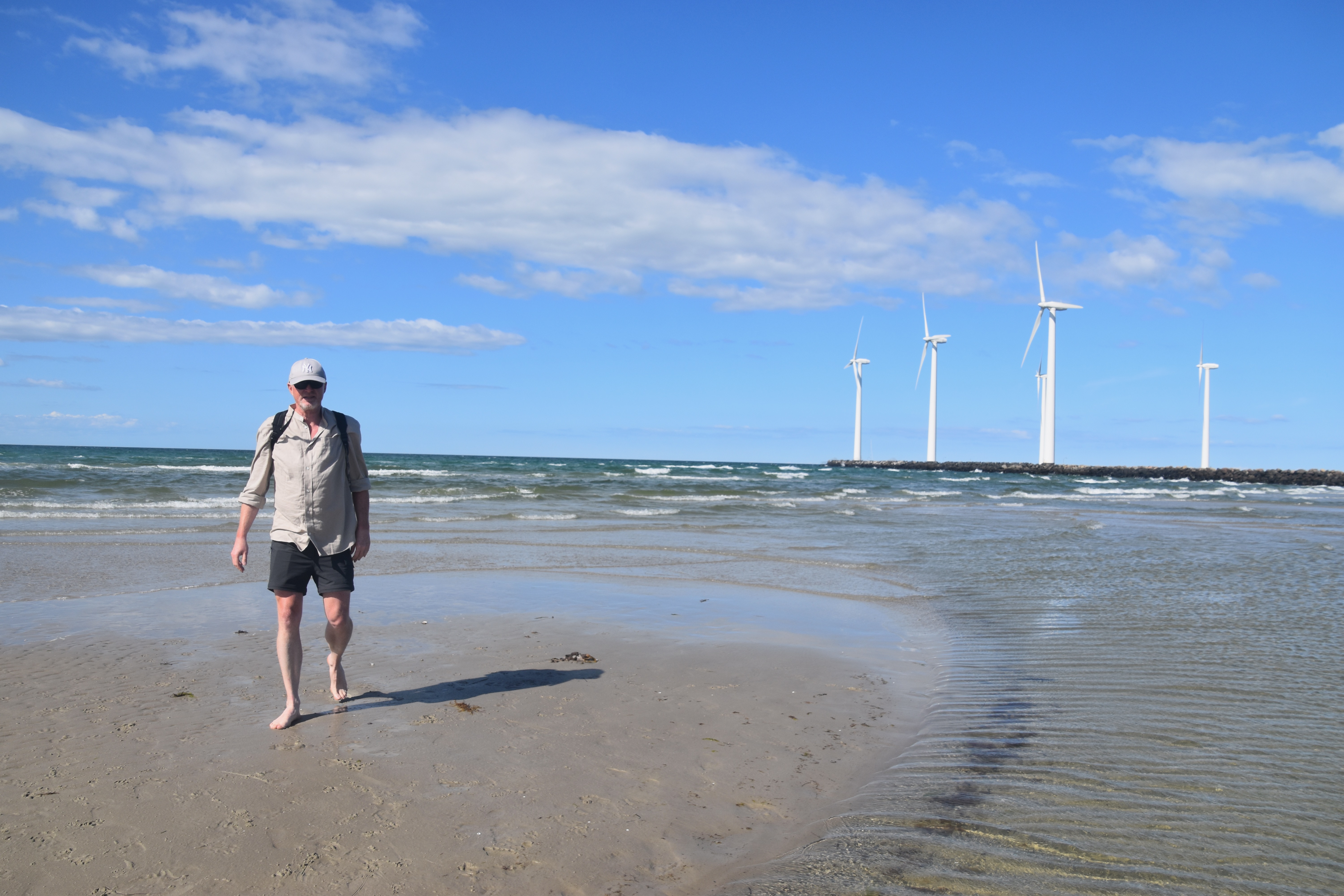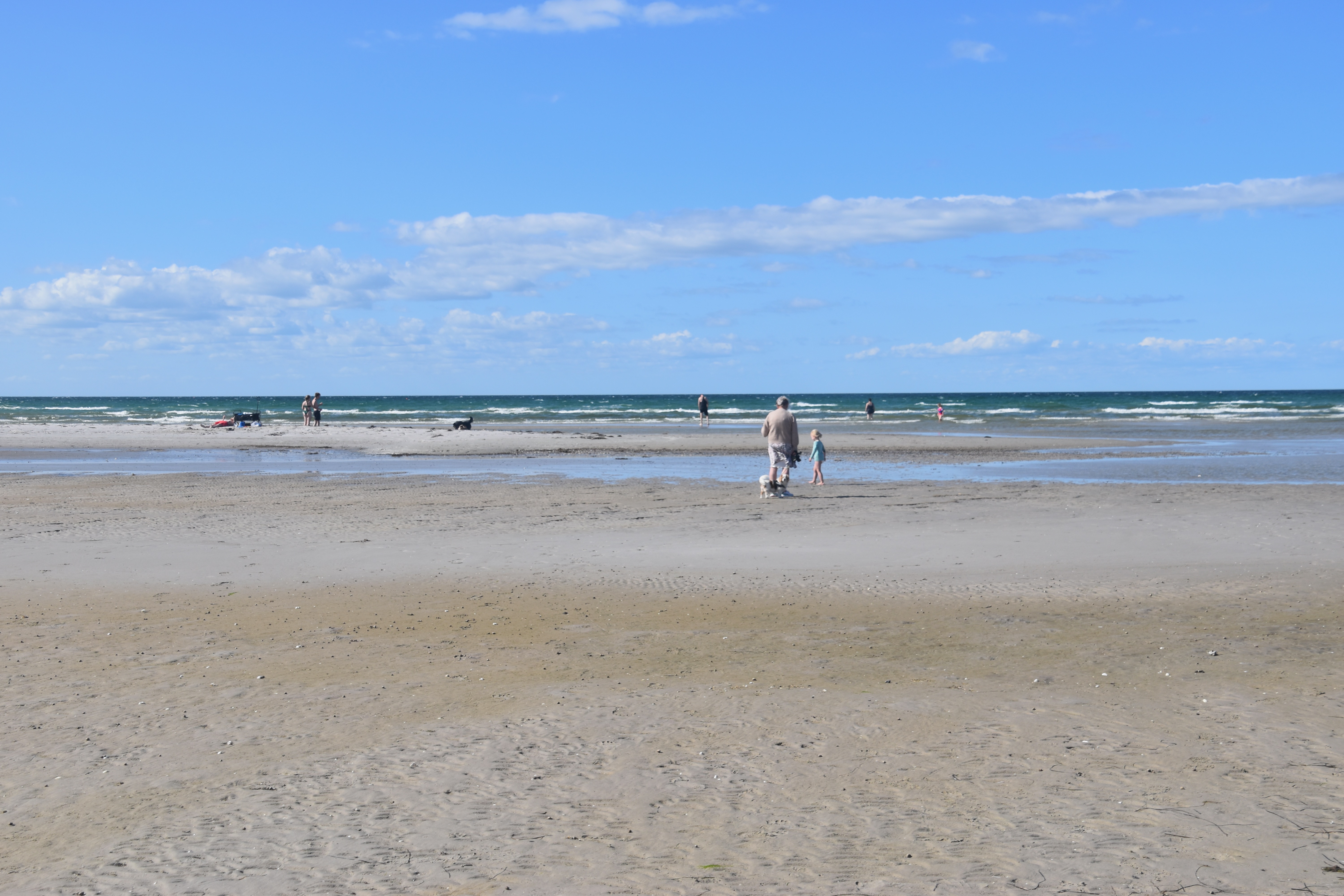 On arrive un peu avant 16h à Bønnerup Stand, au « Molino », qui comme son nom ne l’indique pas, est en réalité un B&B, et non un hôtel. On s’installe sommairement et on repart pour la plage, où on s’offre tour à tour (car il faut que l’un des deux garde les affaires, non à cause des voleurs – la plage est déserte – mais à cause du vent, qui souffle quand même fameusement et risquerait de tout emporter) une baignade ! C’est notre première baignade depuis notre départ, et elle a lieu dans le Kattegat, dont nous pouvons vérifier qu’il est en effet bien plus chaud que ne l’est la mer du Nord.