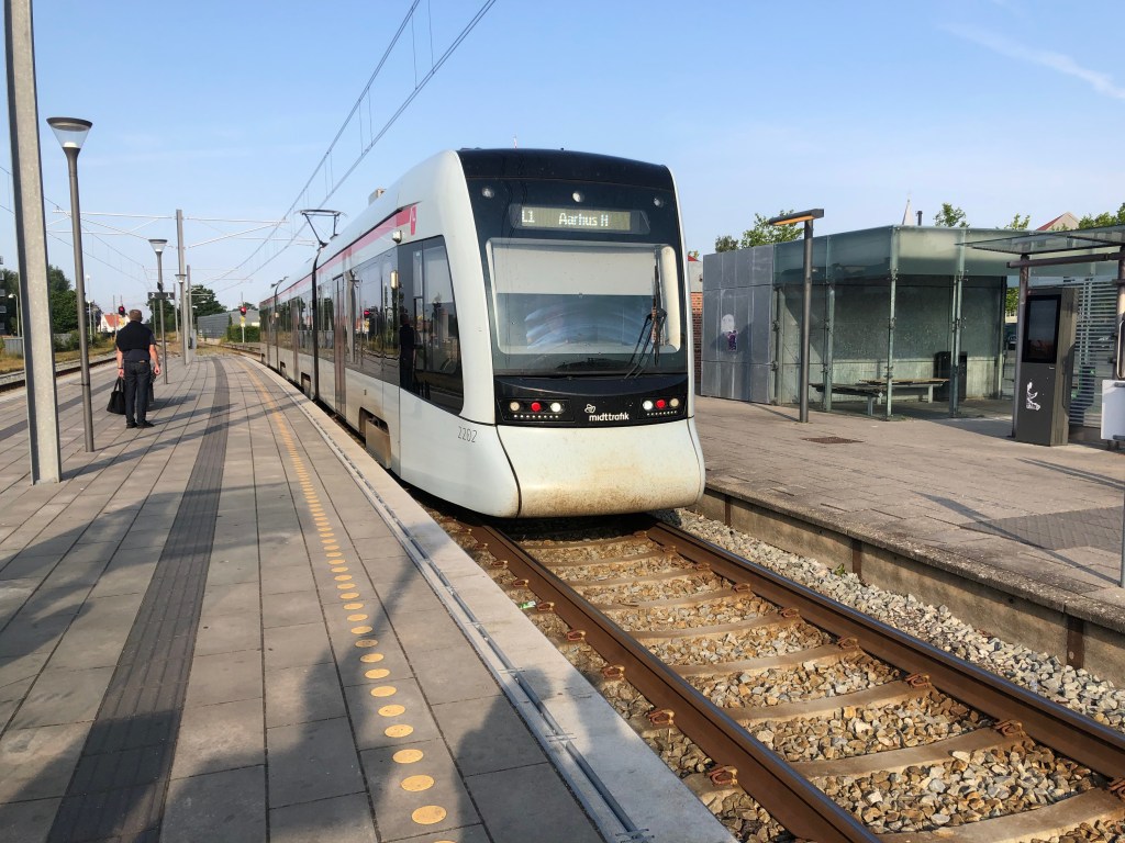 Le plan fonctionne donc à merveille, et mon pneu est toujours bien gonflé. On se met donc en route pour la gare à 7h30, et on monte dans le train « let » (léger) qui va nous mener à Aarhus.