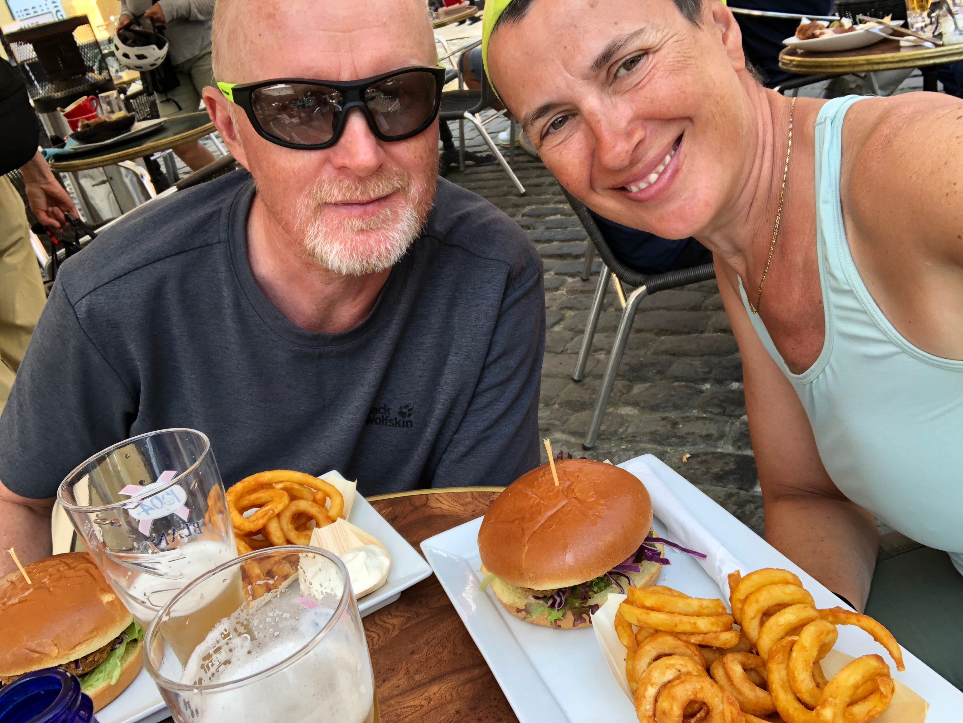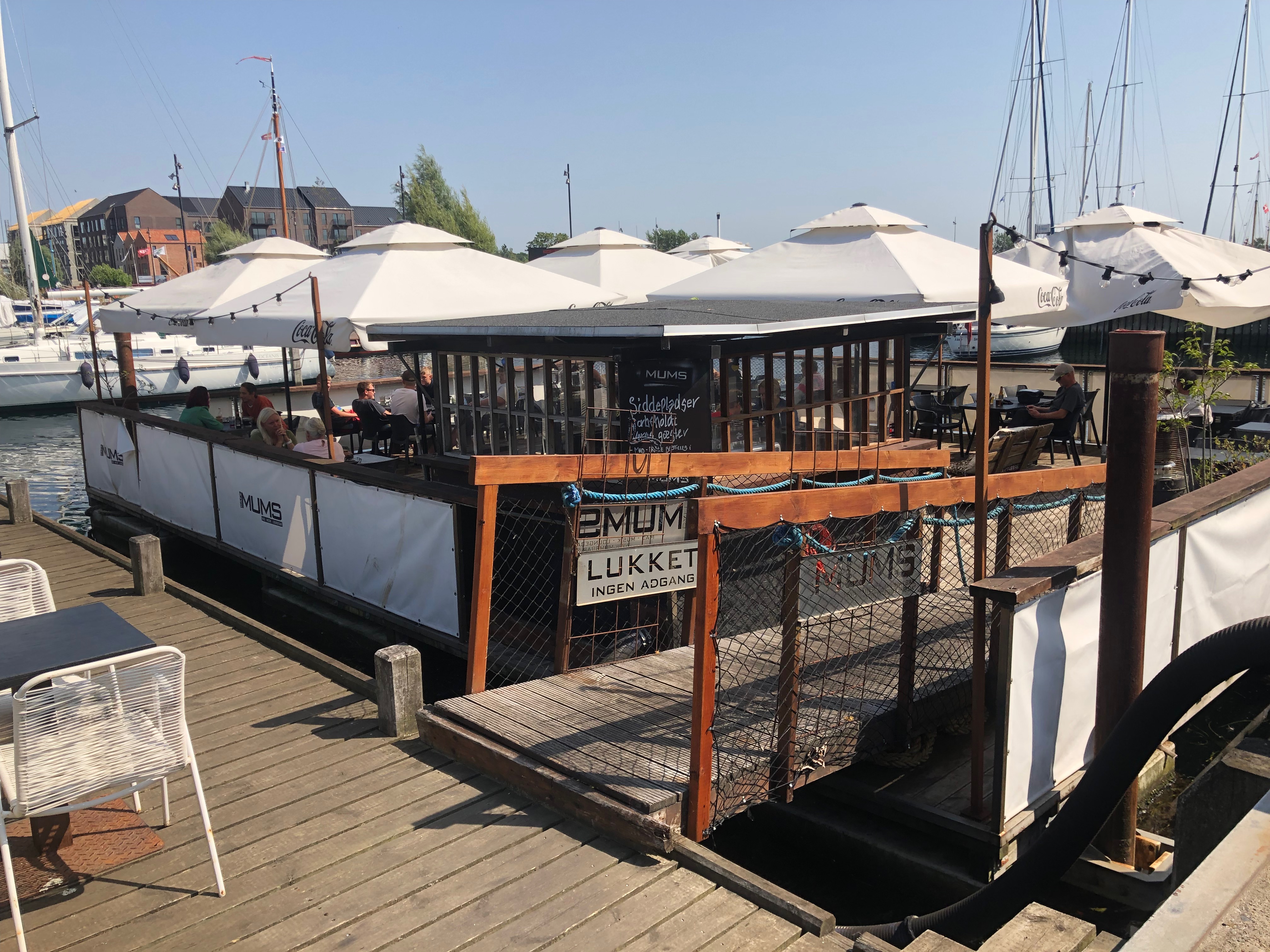 On arrive à 14h45, et on utilise le même plan : hop, sur nos vélos, direction la mer ! Cette fois, comme on n’a que deux heures, on ne flâne pas et on s’installe à la première terrasse au bord de l’eau qu’on trouve, au port de plaisance : le café Mums.