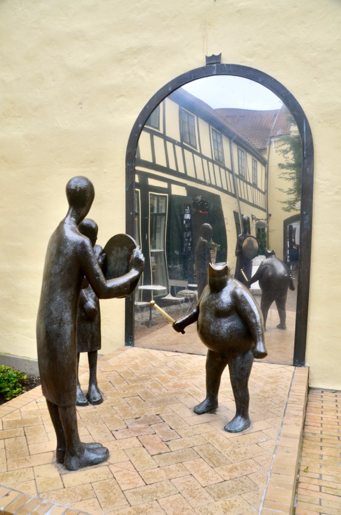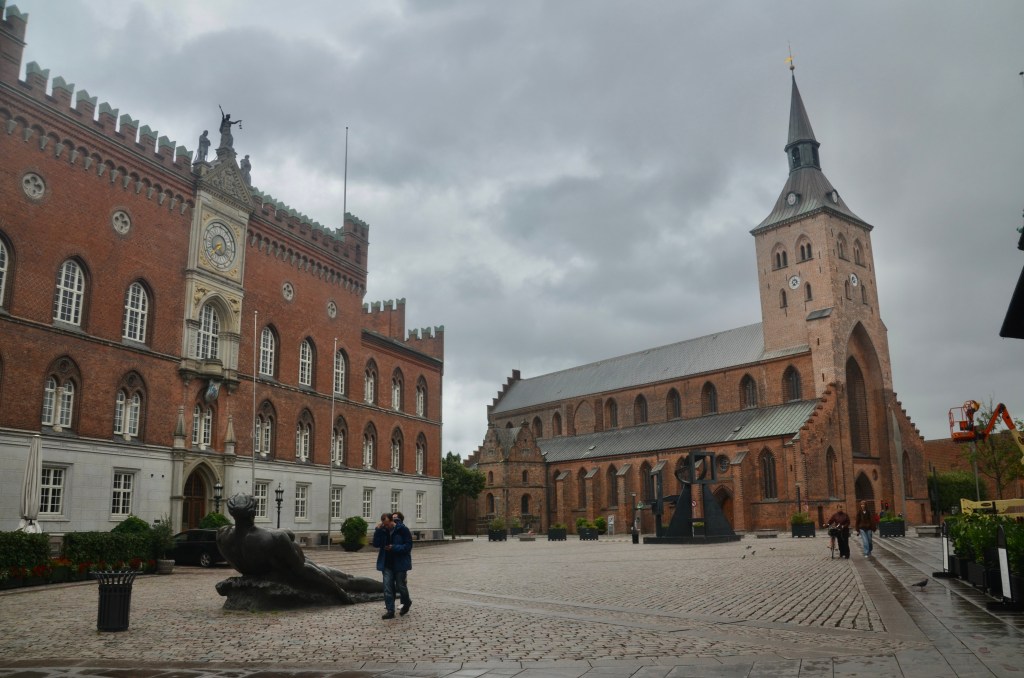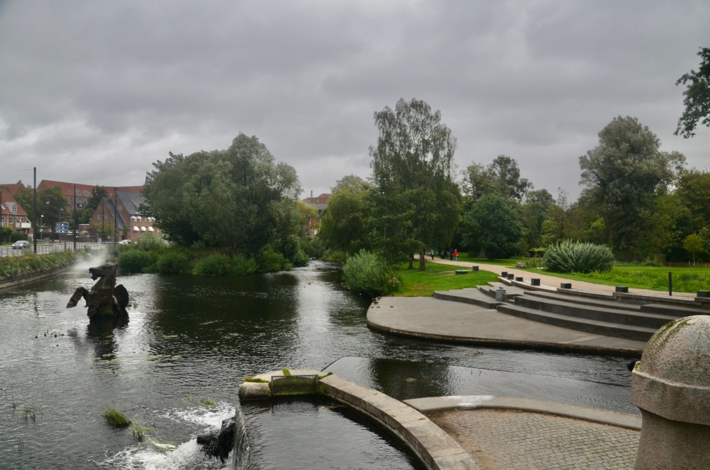 Une fois rafraichis, nous repartons à pied à la découverte d’Odense – la troisième plus grande ville du Danemark, après Copenhague et Aarhus. S’étant fixé comme but le Munke Mose (un grand parc qui a l’air magnifique), on passe devant la maison de H.C. Andersen, se réfugie dans la brasserie Ubn le temps de laisser passer une grosse averse, emprunte les allées du Munke Mose puis revient vers le centre ville et le château d’Odense.