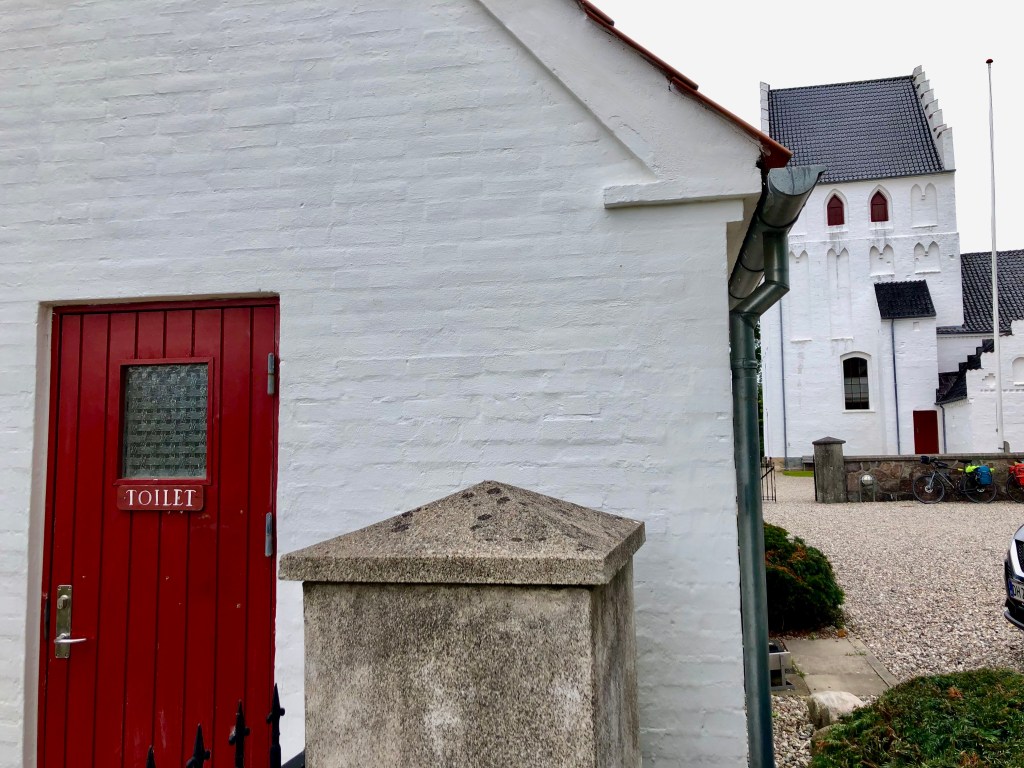 On fait une première pause à l’église d’Asperup après 24 km, un peu après 10h. Décidément, ces toilettes publiques adossées aux églises sont une bénédiction, si je puis dire.
