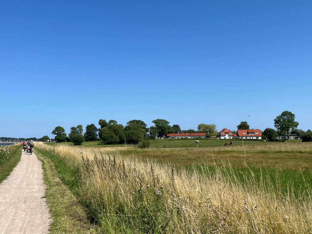À 15h30, après 70 km, on arrive enfin à notre hôtel, le Ostseehotel, à Niesgrau. Les derniers kilomètres ont été vraiment très agréables, heureusement : le plus souvent, la piste cyclable longeait la mer à quelques mètres seulement, avec un revêtement variable, mais toujours convenable. Et l’hôtel est tout à fait charmant. On y a d’ailleurs immédiatement réservé notre repas du soir, qu’on prendra à 17h30, seul moyen d’encore manger ici (ou alors c’était 20h30, mais ça c’est vraiment trop tard pour nous !).
