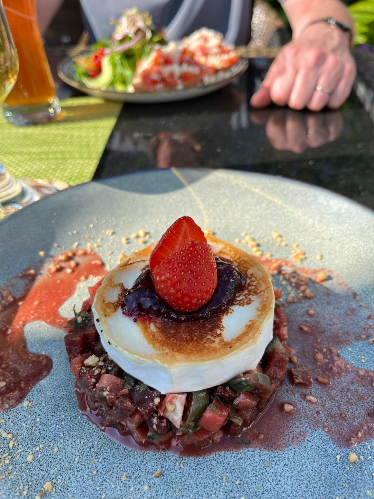 Bref, on est à la terrasse du restaurant à 17h, et on mange délicieusement bien, une petite entrée suivie d’un plat de pâtes… C’est clair, on n’est plus au Danemark ! J’aime beaucoup ce pays, mais rien à faire : en matière de gastronomie et d’hôtellerie (et de pistes cyclables !) entre l’Allemagne et le Danemark, y a pas photo ! D’ailleurs, je reviendrais bien passer quelques jours dans ce petit hôtel au bord de la Baltique… et je retournerais bien au Danemark, mais je n’ai pas encore trouvé dans quel hôtel !