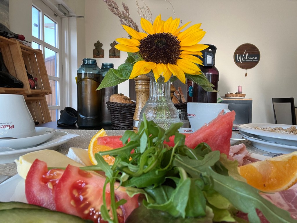 Et enfin, notre logement du jour à 15h45 ! On a fait 71km. Cette fois, on a un grand appartement avec une petite cuisine au premier étage. Pas de petit-déjeuner possible, mais on est en plein centre-ville, et il y a une boulangerie pas loin. Ça devrait aller !