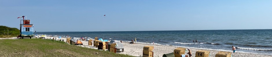 Ces premiers kilomètres ont été très agréables, avec juste ce qu’il faut de montées et de descentes, et on doit être à la moitié de notre trajet du jour à peu près. On a bien eu quelques chemins de coquillages concassés (moi j’aime bien, mais Philipp pas), mais à part ça, c’était de l’asphalte. On voit qu’on est en Allemagne, c’est déjà plus peuplé, il y a plus de villages, moins de grandes étendues désertes de champs ou de prairies, mais c’est très joli, avec quelques magnifiques tronçons où on longe la mer.
