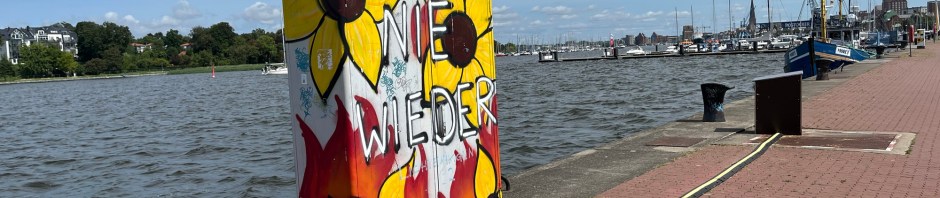 On passe par Lichtenhagen, où se trouve la Sonnenblumenhaus (la maison des tournesols), qui a fait grand bruit au début des années 1990 quand elle fut incendiée par des néo-nazis, alors qu’elle était un centre d’hébergement pour réfugiés.