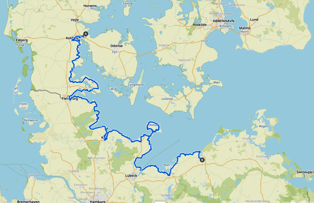 Sinon, on peut résumer ce voyage en quelques chiffres : on a finalement fait 839 kilomètres depuis notre départ de l’hôtel Gammel Havn à Fredericia jusqu’à notre arrivée à l’hôtel Intercity de Rostock (sans compter donc les petits trajets supplémentaires). Et ce, en 12 jours de vélo, soit une moyenne de près de 70km par jour.