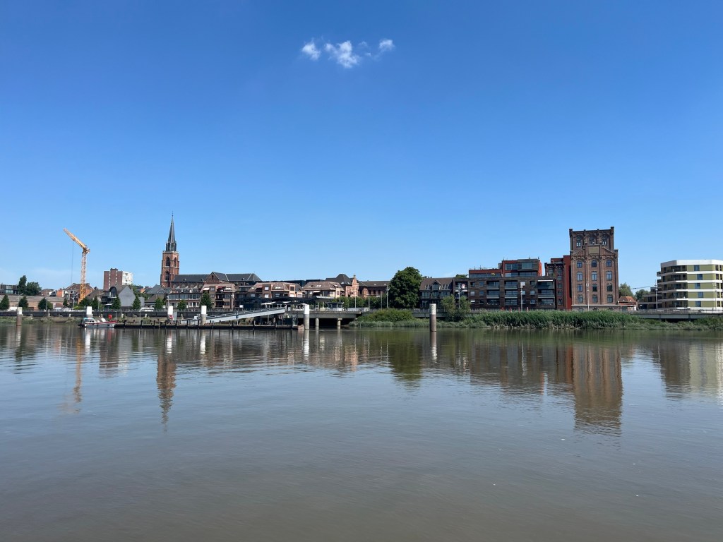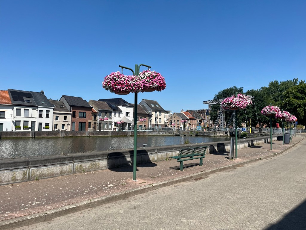 Je fais l’erreur de ne pas m’installer finalement à la terrasse de l’autre côté, qui ne me semblait pas suffisamment fraîche. Du coup je dois encore rouler un peu plus longtemps que ce que j’aurais espéré pour trouver enfin un endroit où m’arrêter, après avoir un peu tourné dans Boom, été jusqu’à la gare, et découvert à cette occasion une possibilité de rejoindre Noeveren par un tunnel cycliste, plutôt qu’en empruntant un abominable pont.