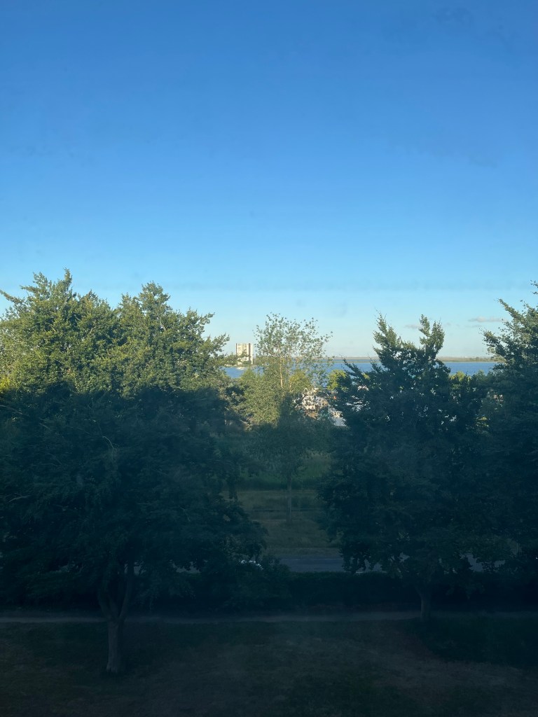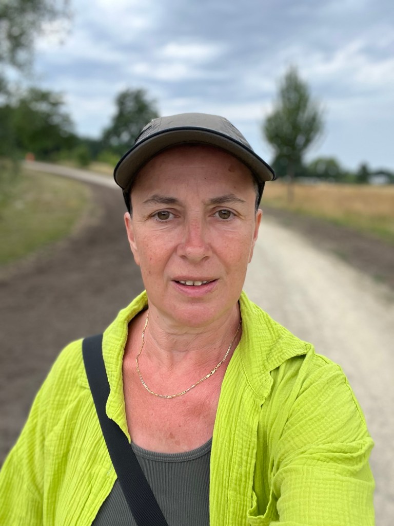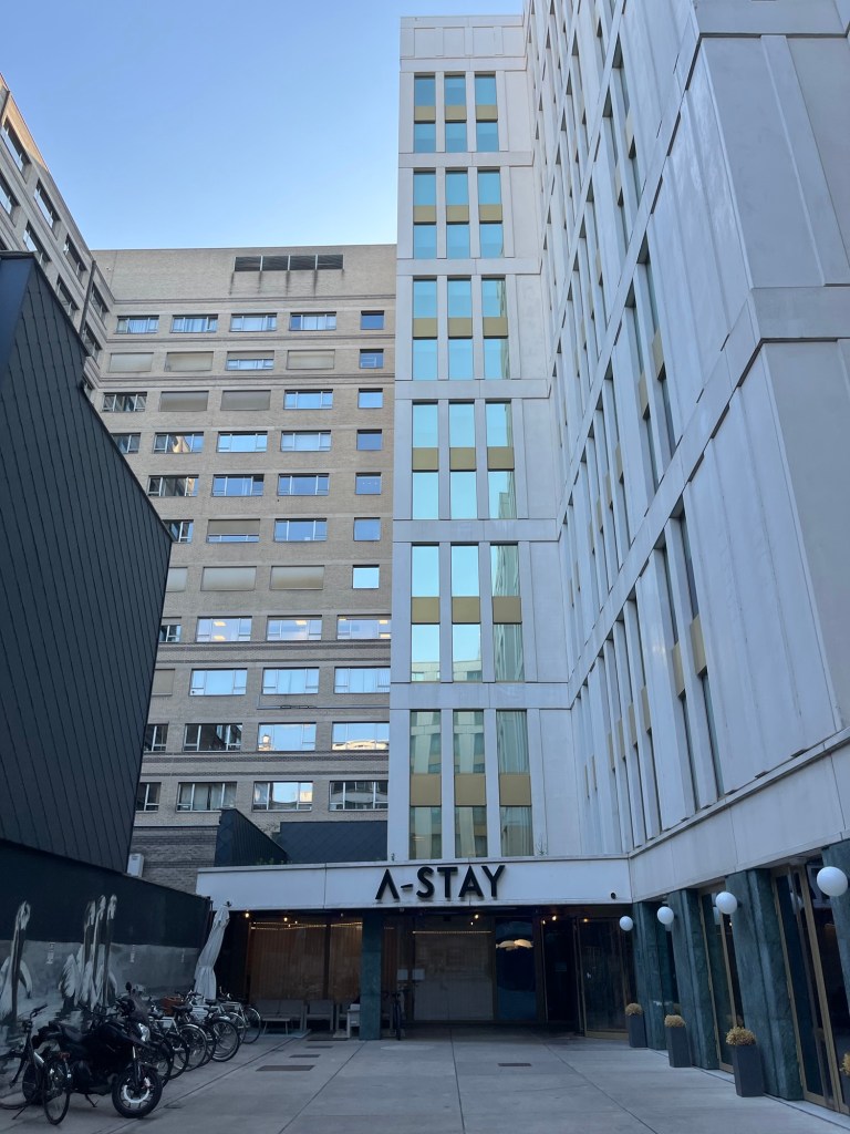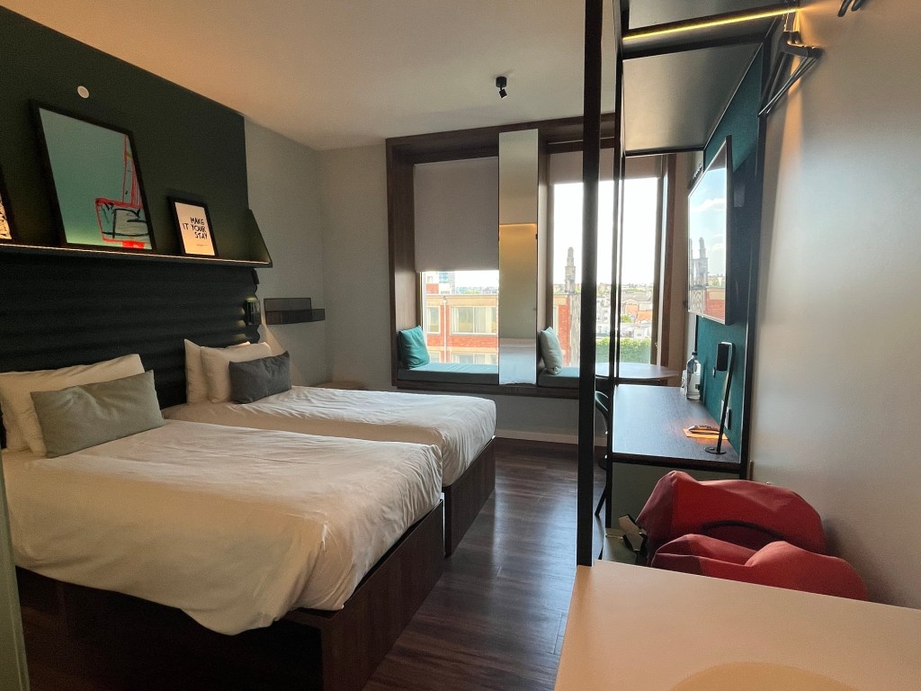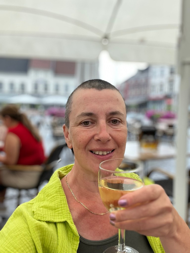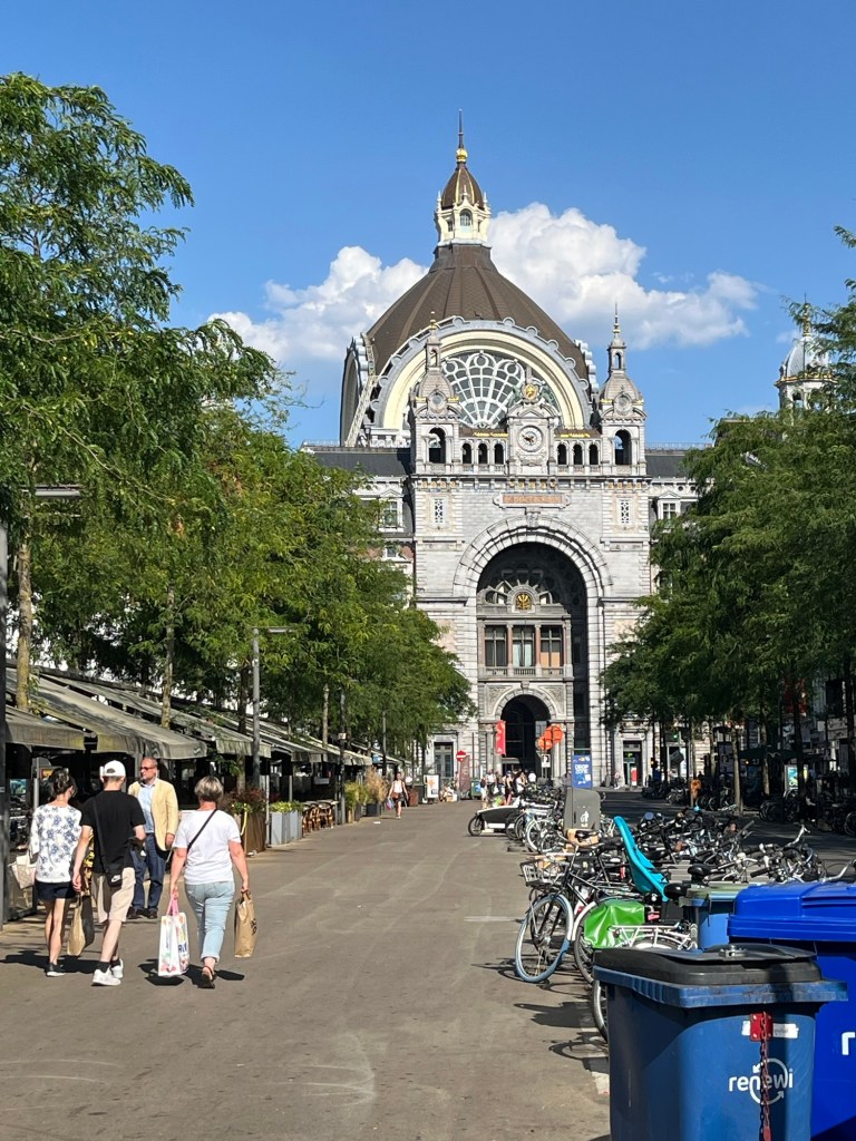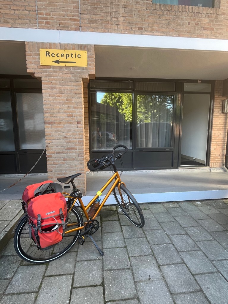 Je fais une dernière pause à 15h10 à Anvers, à la terrasse du bistro Pompidou. Et à 16h, j’arrive à mon hôtel, le A-Stay, où j’occupe une chambre au septième étage dans la Pelikaanstraat. On ne va pas se mentir, comme disent les jeunes : la journée a été vraiment éprouvante. À plusieurs moments, je me suis vraiment sentie mal, avec des frissons et un léger mal de tête qui indiquait très clairement la déshydratation. Pourtant, je n’ai pas arrêté de boire, mais y a rien à faire : quand c’est trop chaud, c’est trop chaud ! Rester immobile en plein soleil était tout simplement impossible. Heureusement, les cinq derniers kilomètres, après ma dernière pause, ont été relativement arborés et donc plus supportables.