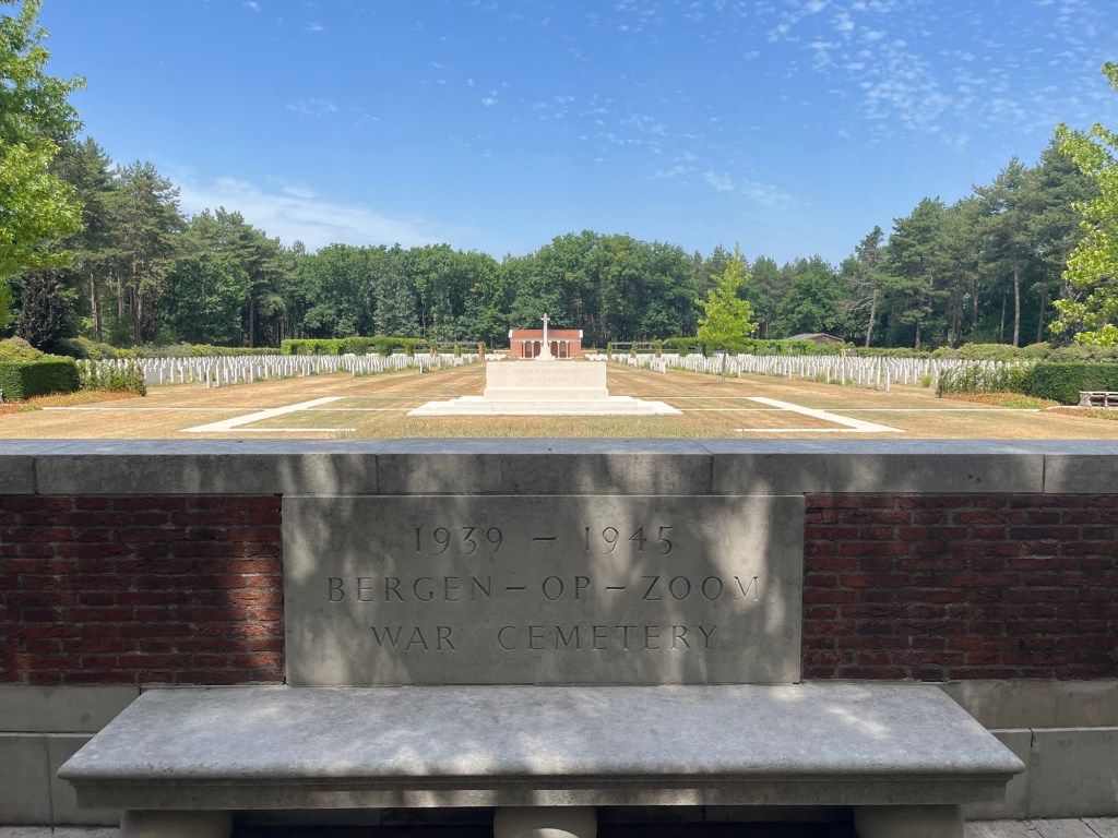 Après 60 km, à 13h30, j’arrive au cimetière militaire de Bergen-op-Zoom. J’ai grand besoin d’une bonne pause, je commence à avoir faim, mais heureusement le centre n’est plus très loin. Après, j’aimerais aller jusqu’à la presqu’île de Tholen, si je suis assurée de trouver à y loger.