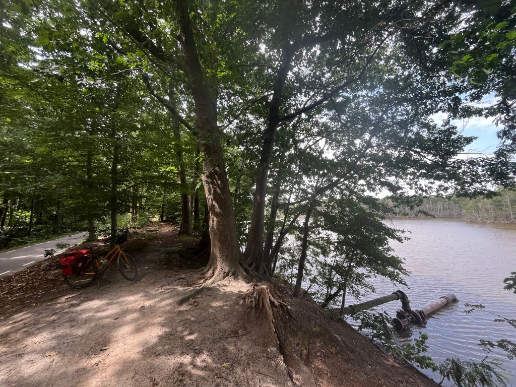 Puis, après quelques kilomètres le long de cette grand route, on la quitte enfin pour une autre, un peu plus cyclo-compatible, puis on rejoint le bord de l’eau, qu’on longe un peu avant de bifurquer vers le centre-ville.