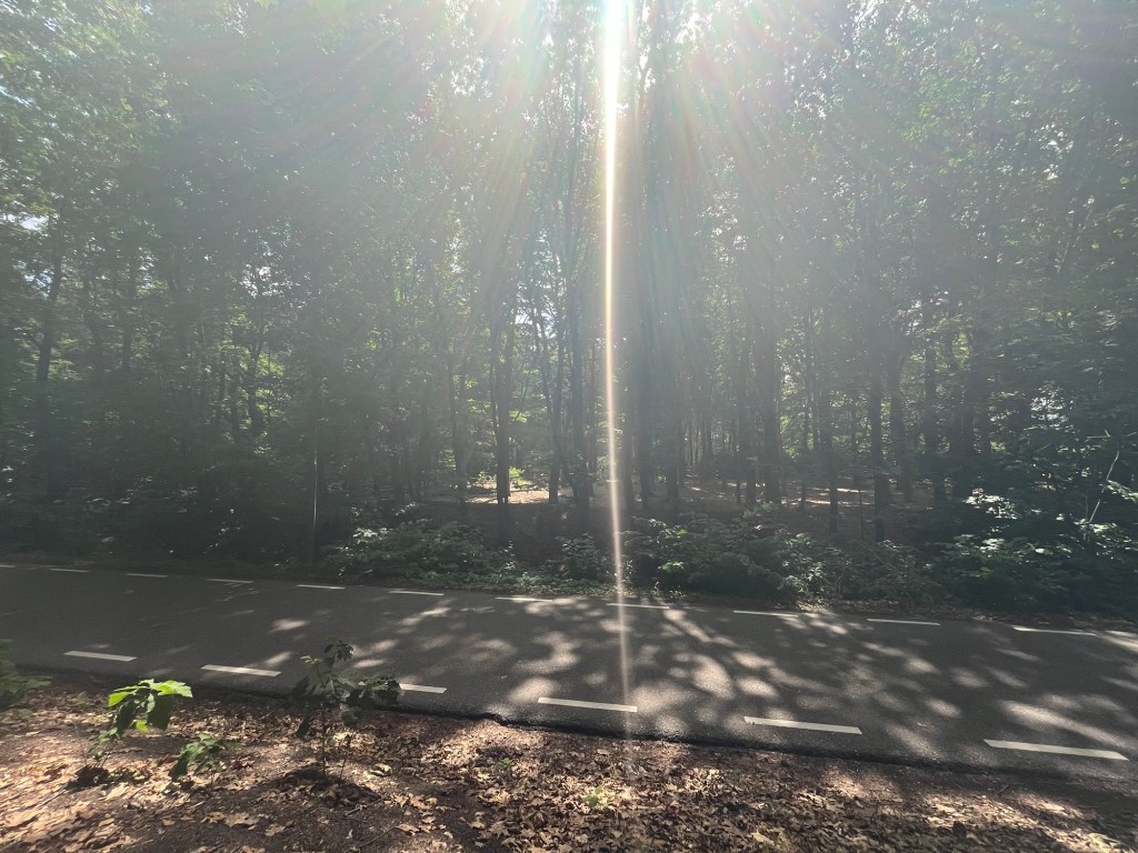 Après 22 km, à l’entrée de Putte, je change brusquement d’avis et oblique à droite vers Kalmthout. J’avoue que la perspective de devoir franchir le Brabantse wal n’a pas été pour rien dans ma décision. Il me semble l’avoir déjà fait un jour, et par cette canicule, franchement je crois que ce serait trop. J’emprunte donc un ravissant chemin ombragé, mais malheureusement moins carrossable que les pistes cyclables empruntées jusqu’ici.