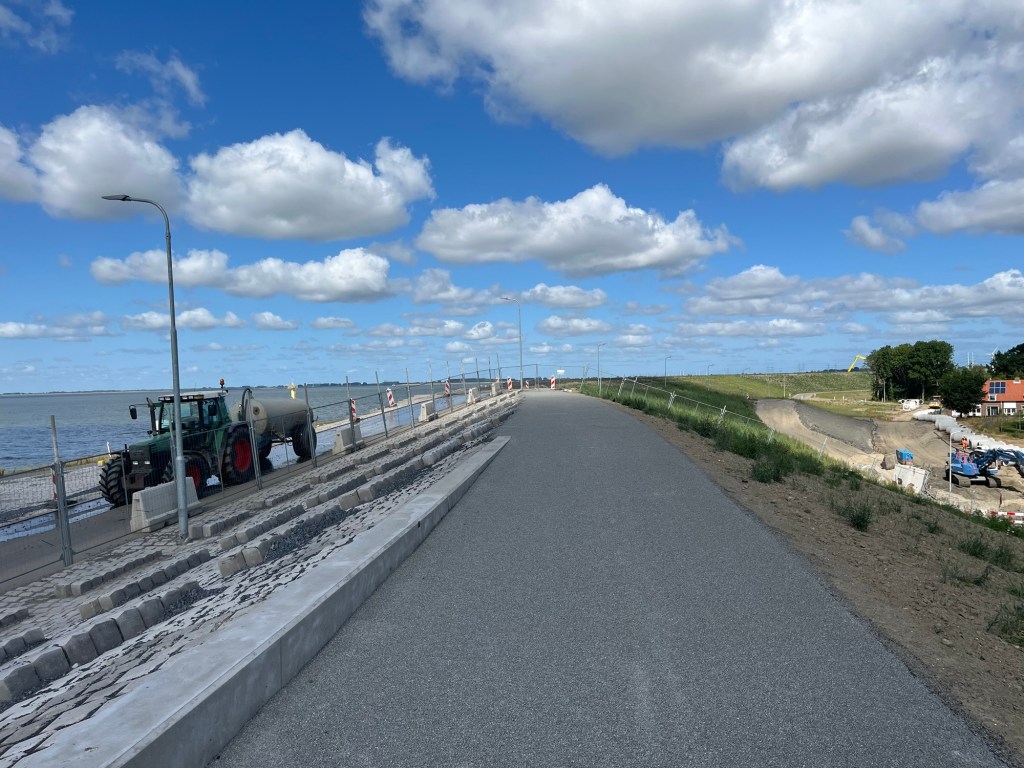 Cet après-midi, au nord de l’île, on est passés à proximité d’un gigantesque chantier. Philipp a émis l’hypothèse qu’ils construisaient un tunnel vers le Danemark. Et ce soir, bingo ! On a eu confirmation, en passant devant un centre d’information, qu’un tel chantier était en effet en cours. Le tunnel fera 18km !
