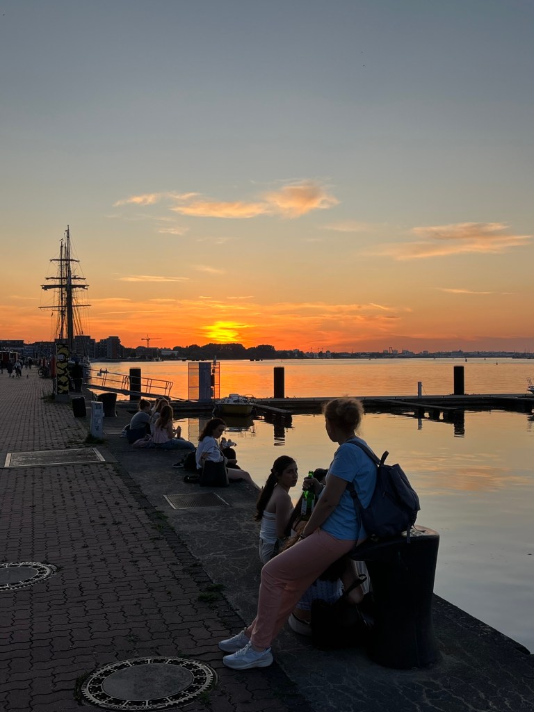 Notre plan est clair, bien pensé, et surtout, nous permet de rentrer à Bruxelles tranquillement, sans multiplier exagérément le nombre de trains par jour, et en profitant encore de notre dernière étape pour voir une jolie ville. On a donc arrêté notre choix sur Münster, ce qui nous permet de ne prendre que deux trains le premier jour : Rostock – Hamburg et Hamburg – Münster, histoire d’arriver à Münster vers 15h. J’ai déjà repéré un lac où on pourrait aller se baigner, et évidemment, on compte bien s’offrir un petit resto le soir !