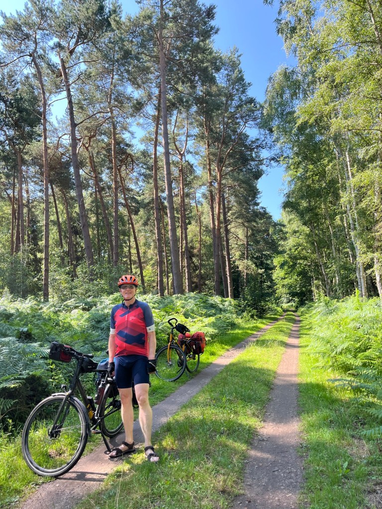 Je m’offre encore un petit détour en suivant des indications vers deux restaurants que je ne trouve jamais, mais ça me permet de découvrir un peu des paysages campinois que j’ai finalement assez peu vus aujourd’hui : forêts de bouleaux ou de pins, étendues d’eau entourées d’étendues sablonneuses, etc.