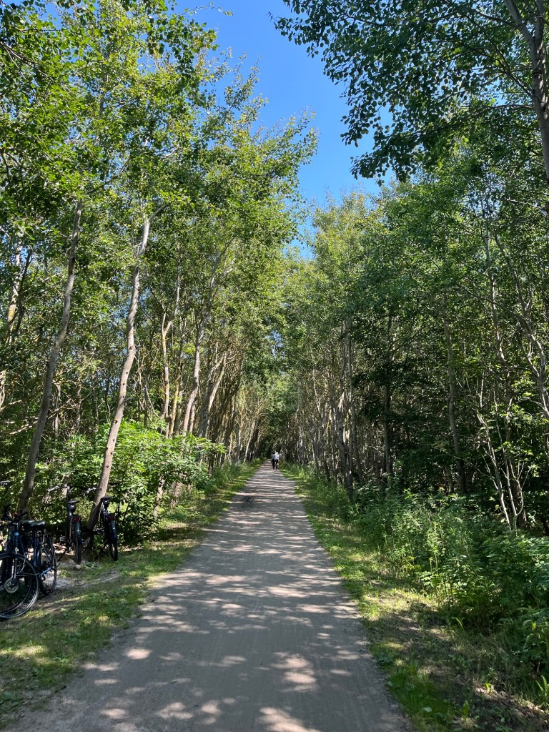 Puis on rejoint rapidement la côte, et on la longe quasiment tout le temps jusqu’à Warnemünde. La route est magnifique, la plupart du temps séparée des voitures, dans les bois ou le long de la digue.